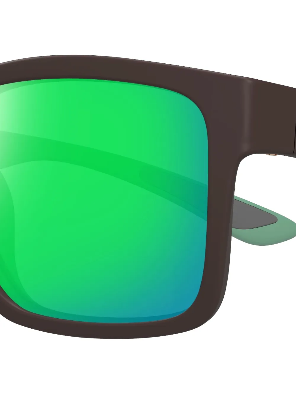 bruin groene glazen donkergroene uiteinden van de pootjes polariserende glazen vierkant montuur neuskussentjes Deze bril wordt verkocht met een beschermhoes.