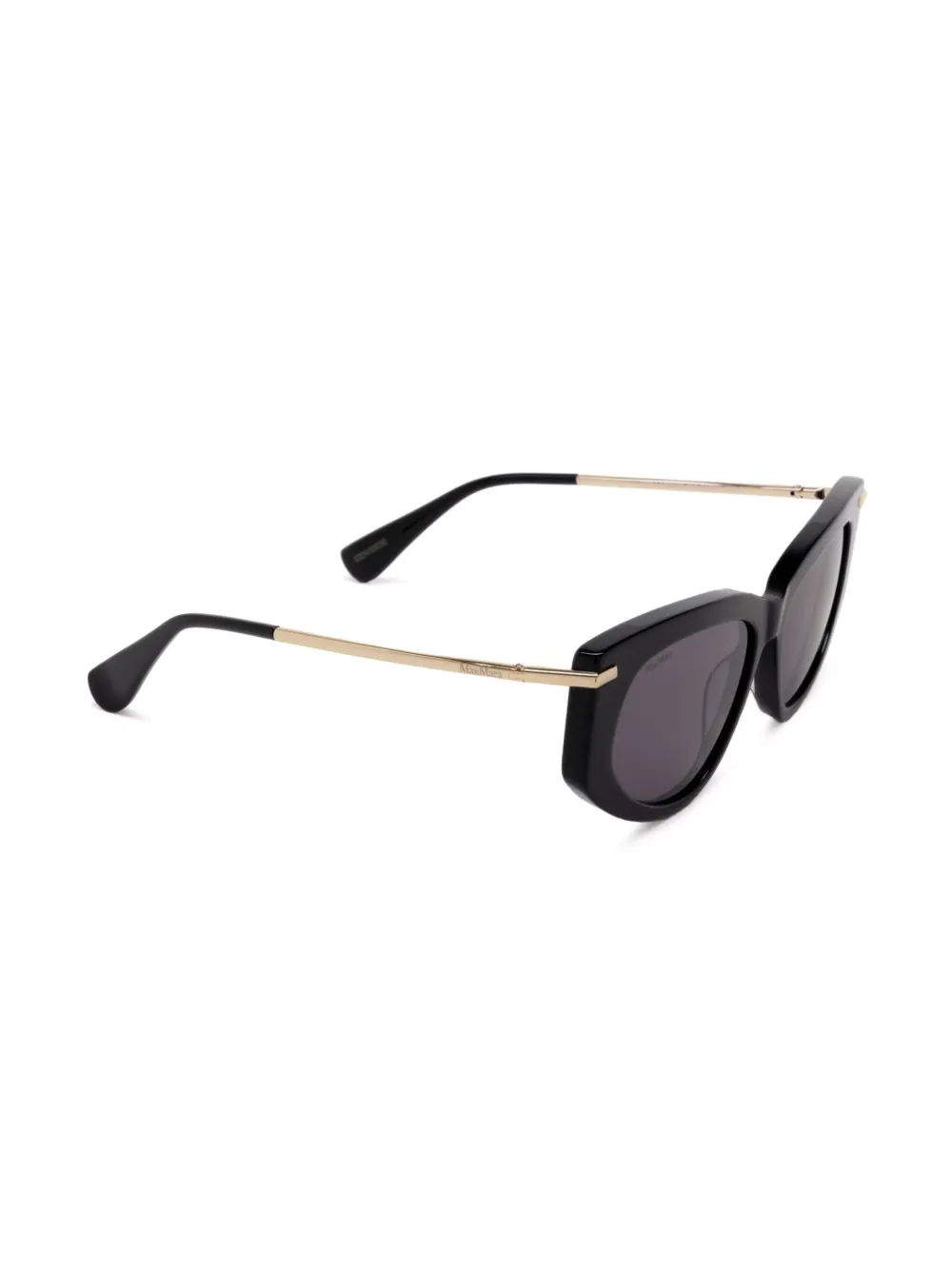 zwart/goudkleurig cat-eye montuur grijze glazen neuskussentjes pootje met gegraveerd logo rechte pootjes gebogen uiteinden Deze bril wordt verkocht met een beschermhoes.