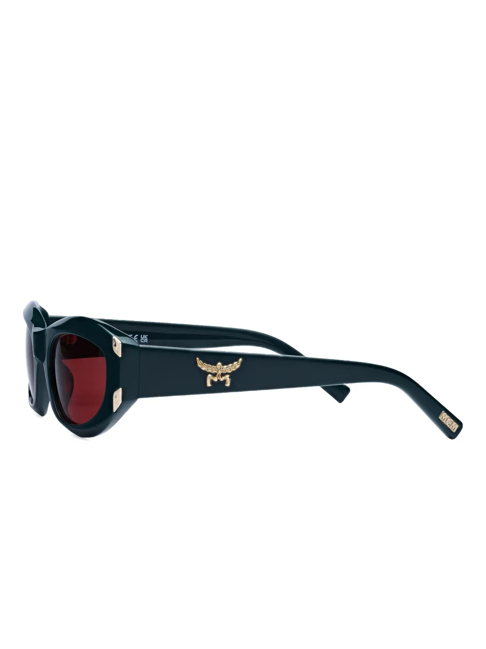 groen ovalen montuur rode glazen logopatch Deze bril wordt verkocht met een beschermhoes.