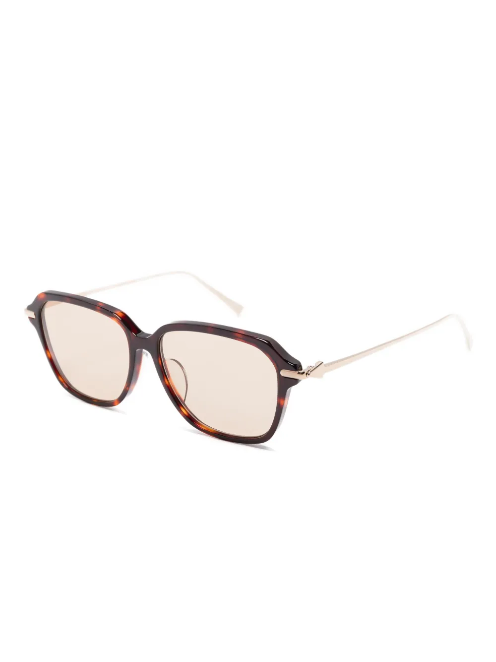 donkerbruin schildpadschild-design goudkleurige metalen pootjes vierkant montuur gekleurde glazen Deze bril wordt verkocht met een beschermhoes.