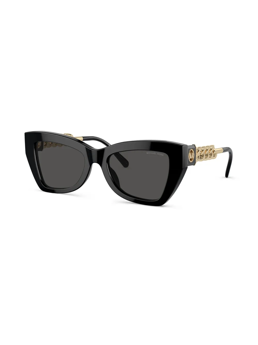 zwart cat-eye montuur gekleurde glazen geschulpte pootjes schakelkettingdetails gebogen uiteinden neuskussentjes Deze bril wordt verkocht met een beschermhoes.