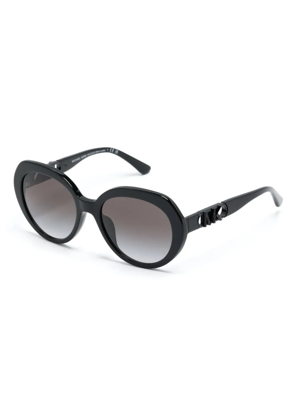 zwart acetaat oversized montuur grijze glazen glazen met UV-bescherming logo lens sticker logoplakkaat aan de poten uitgesneden detail rechte poten met gebogen uiteinden Deze bril wordt verkocht met een beschermhoes.