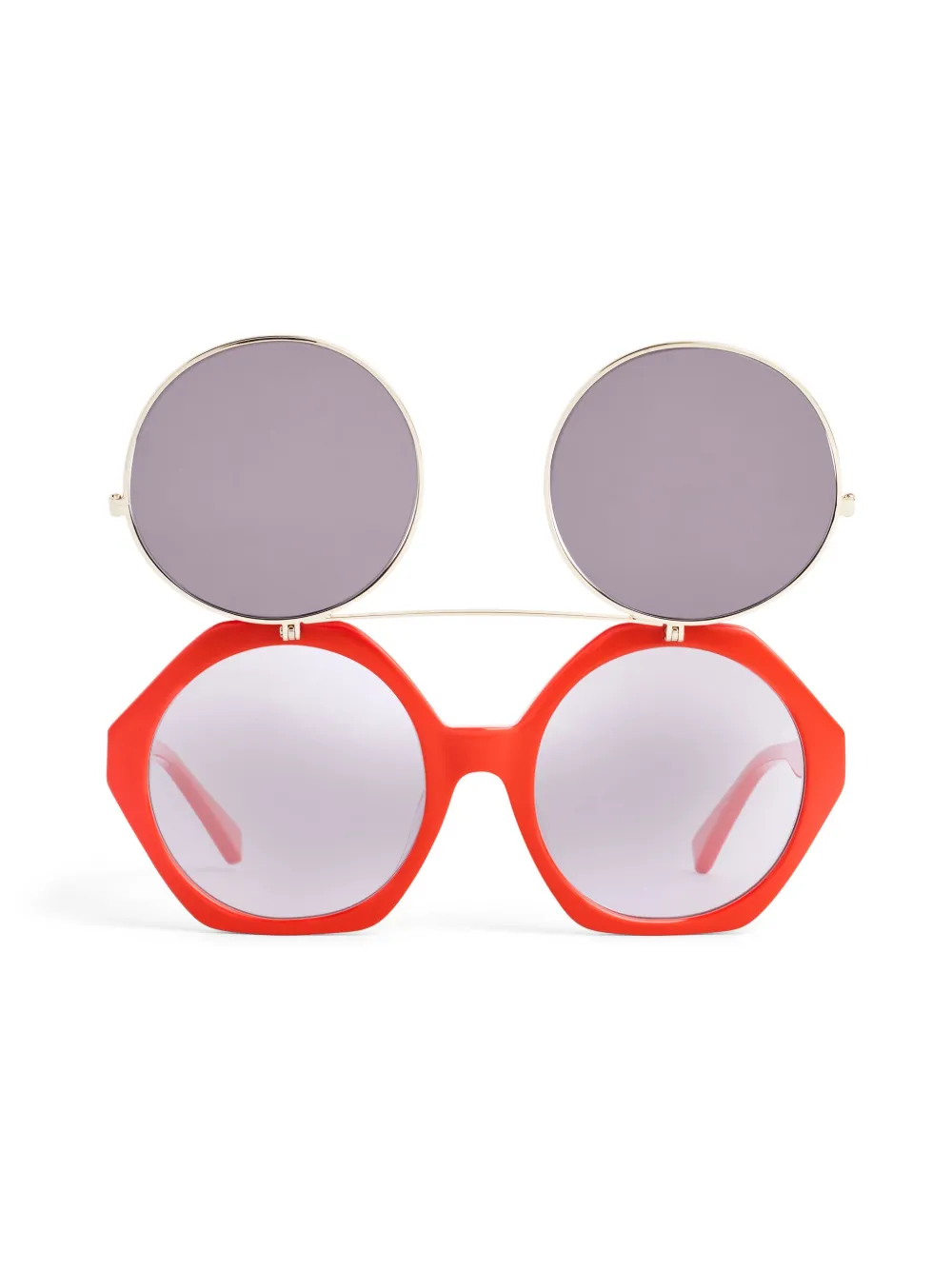 rood acetaat geometrisch montuur flip-up glazen glazen met UV-bescherming gekleurde glazen logoprint op het pootje gebogen uiteinde Deze bril wordt verkocht met een beschermhoes.