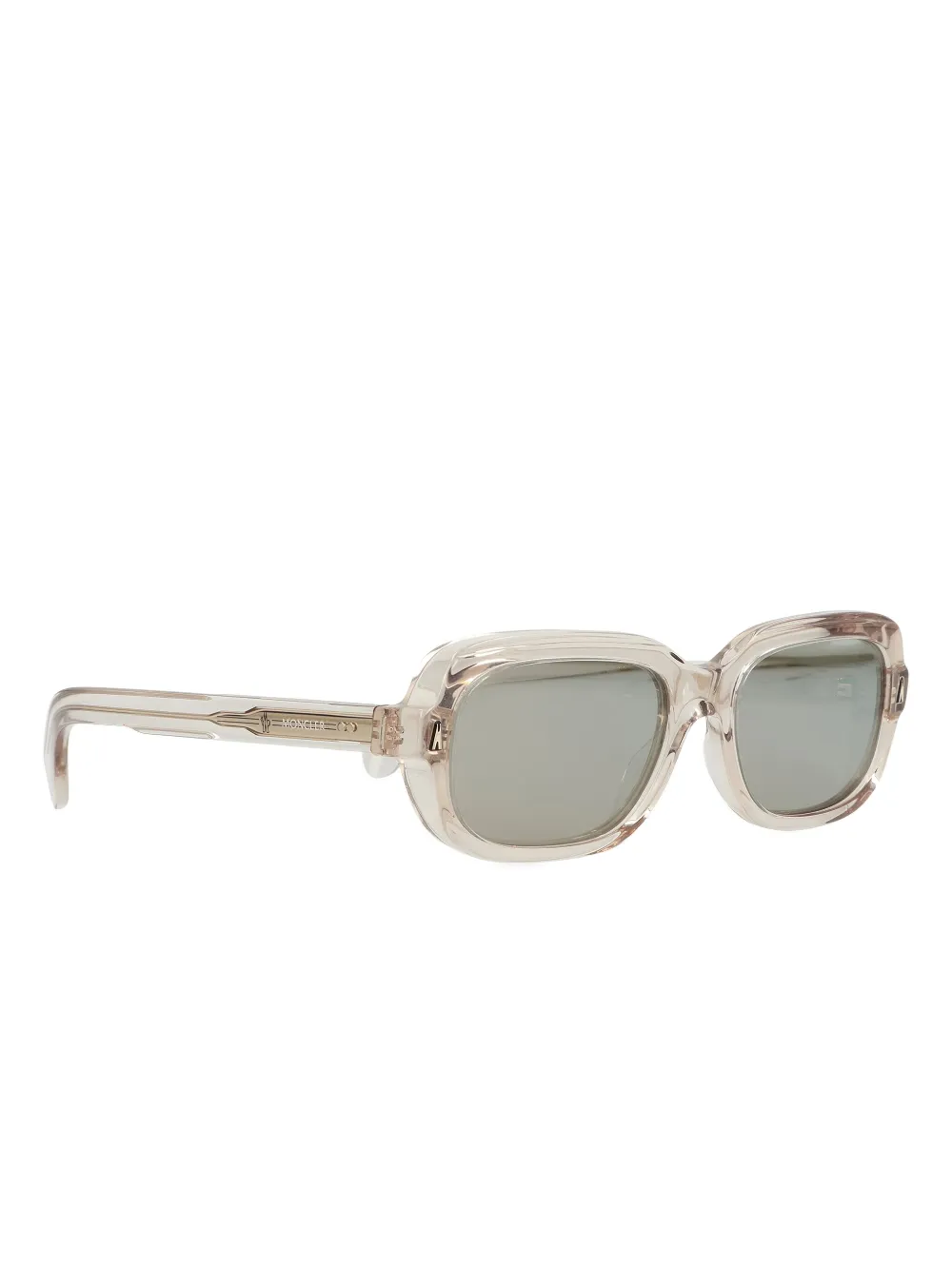 beige rechthoekig montuur acetaat grijze glazen details op de pootjes logo Deze bril wordt verkocht met een beschermhoes.