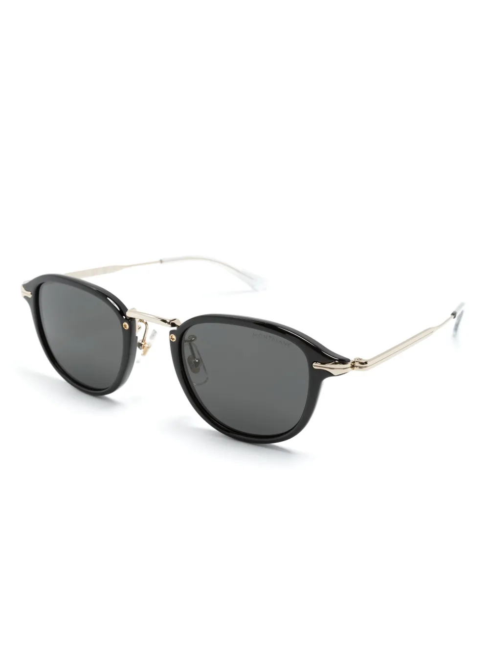 goudkleurig zwart neuskussentjes metalen staaf bij de wenkbrauwen rechte pootjes lens sticker metaal acetaat grijze glazen vierkant montuur glazen met UV-bescherming gebogen uiteinden Deze bril wordt verkocht met een beschermhoes.