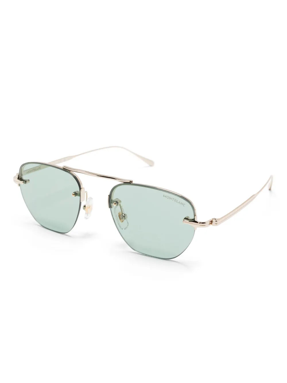 goudkleurig groen getinte glazen neuskussentjes rechte pootjes gebogen uiteinden Deze bril wordt verkocht met een beschermhoes.
