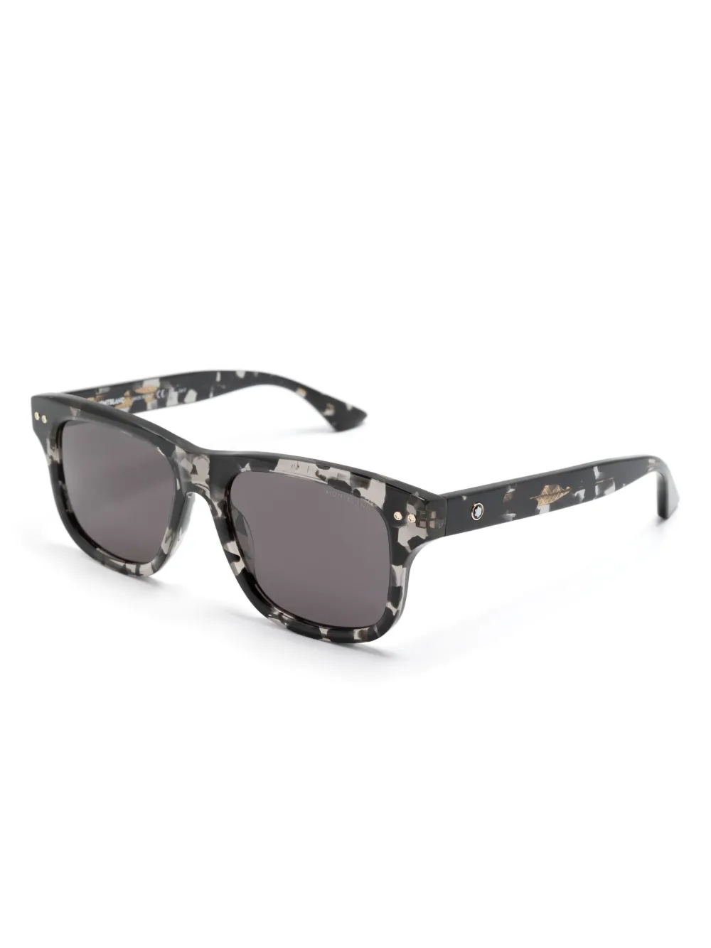 zwart/grijs acetaat abstract patroon grijze glazen vierkant montuur rechte poten met gebogen uiteinden Deze bril wordt verkocht met een beschermhoes.