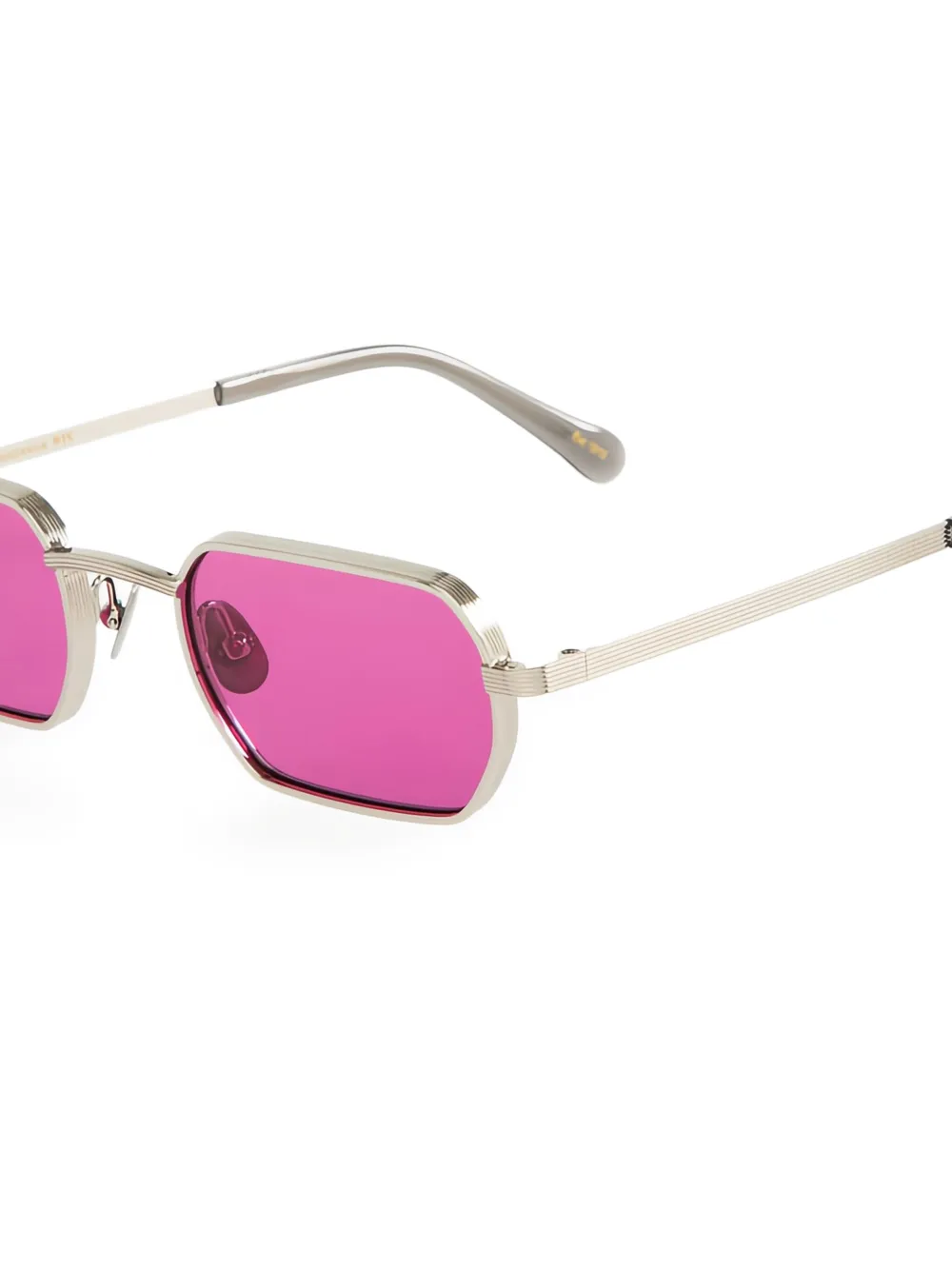 grijs roze glazen rechthoekig montuur neuskussentjes gebogen uiteinden Deze bril wordt verkocht met een beschermhoes.