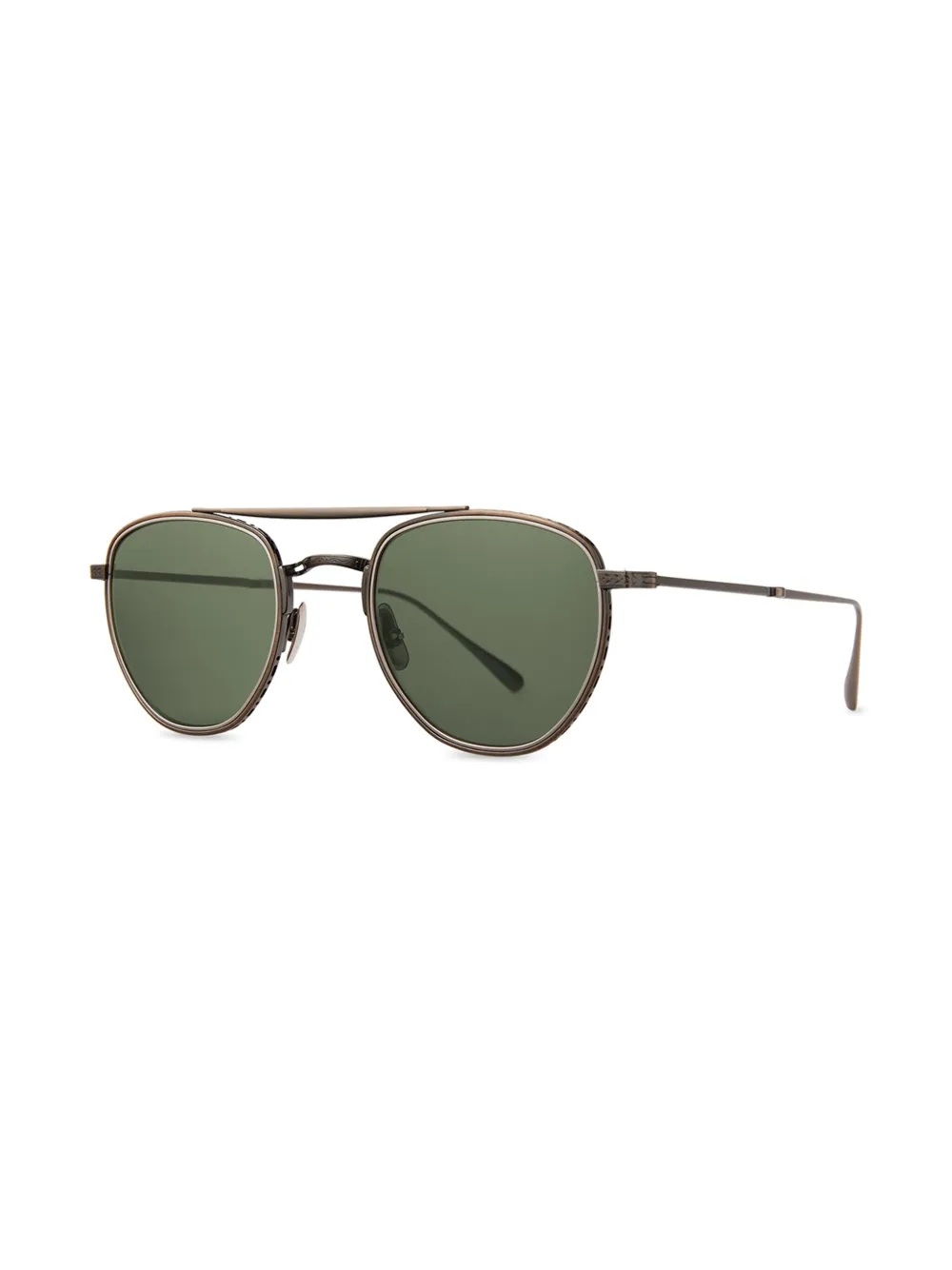 goudkleurig titanium piloten montuur groen getinte glazen glazen met UV-bescherming neuskussentjes rechte pootjes gebogen uiteinden Deze bril wordt verkocht met een beschermhoes.