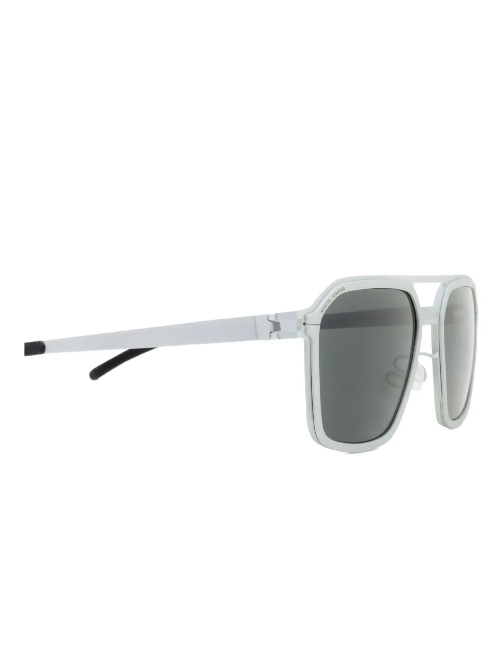 zilver vierkant montuur donkergrijze glazen metalen montuur smalle pootjes subtiel logo Deze bril wordt verkocht met een beschermhoes.