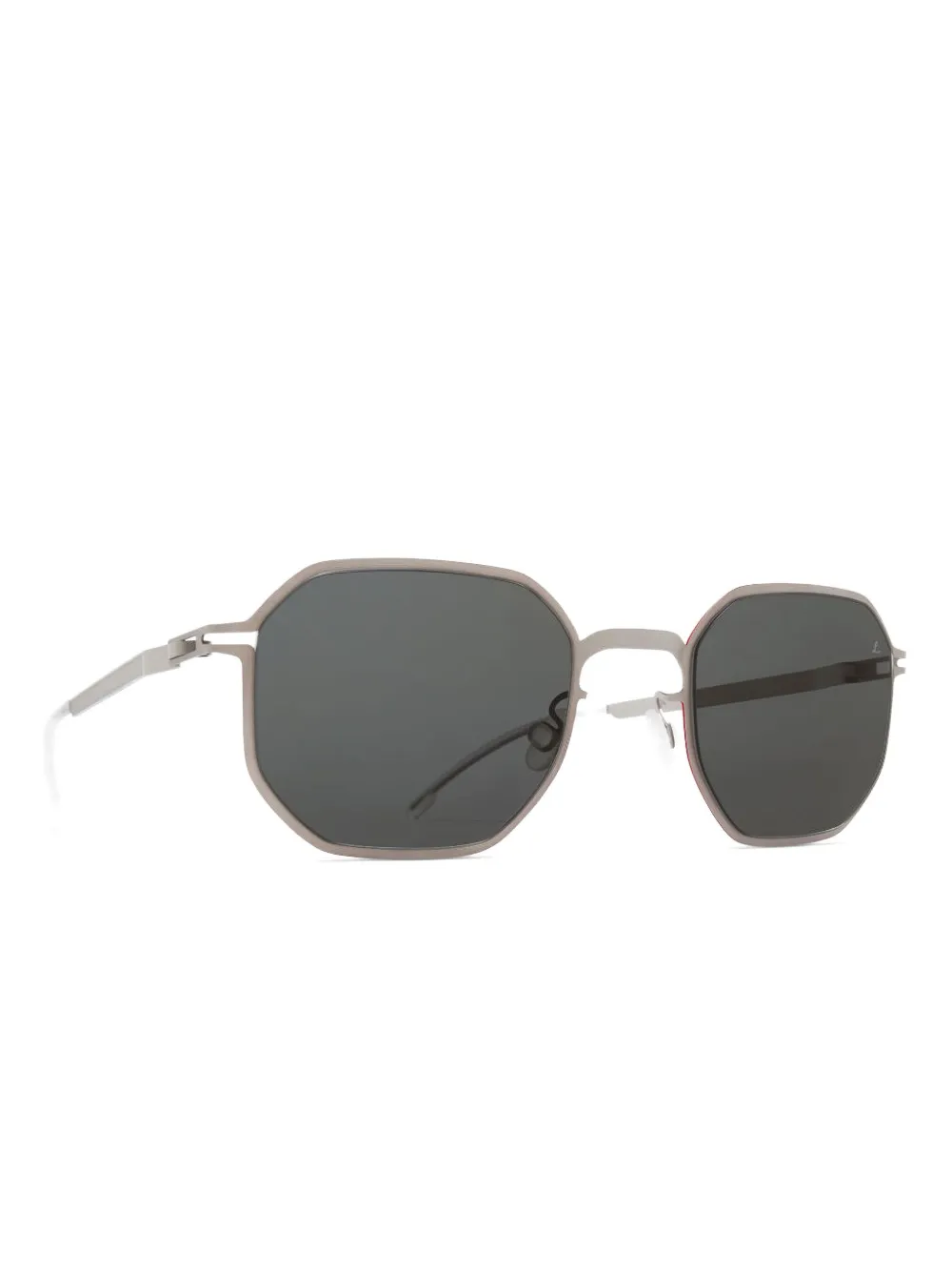 grijs geometrisch montuur grijze glazen gebogen uiteinden neuskussentjes Deze bril wordt verkocht met een beschermhoes.