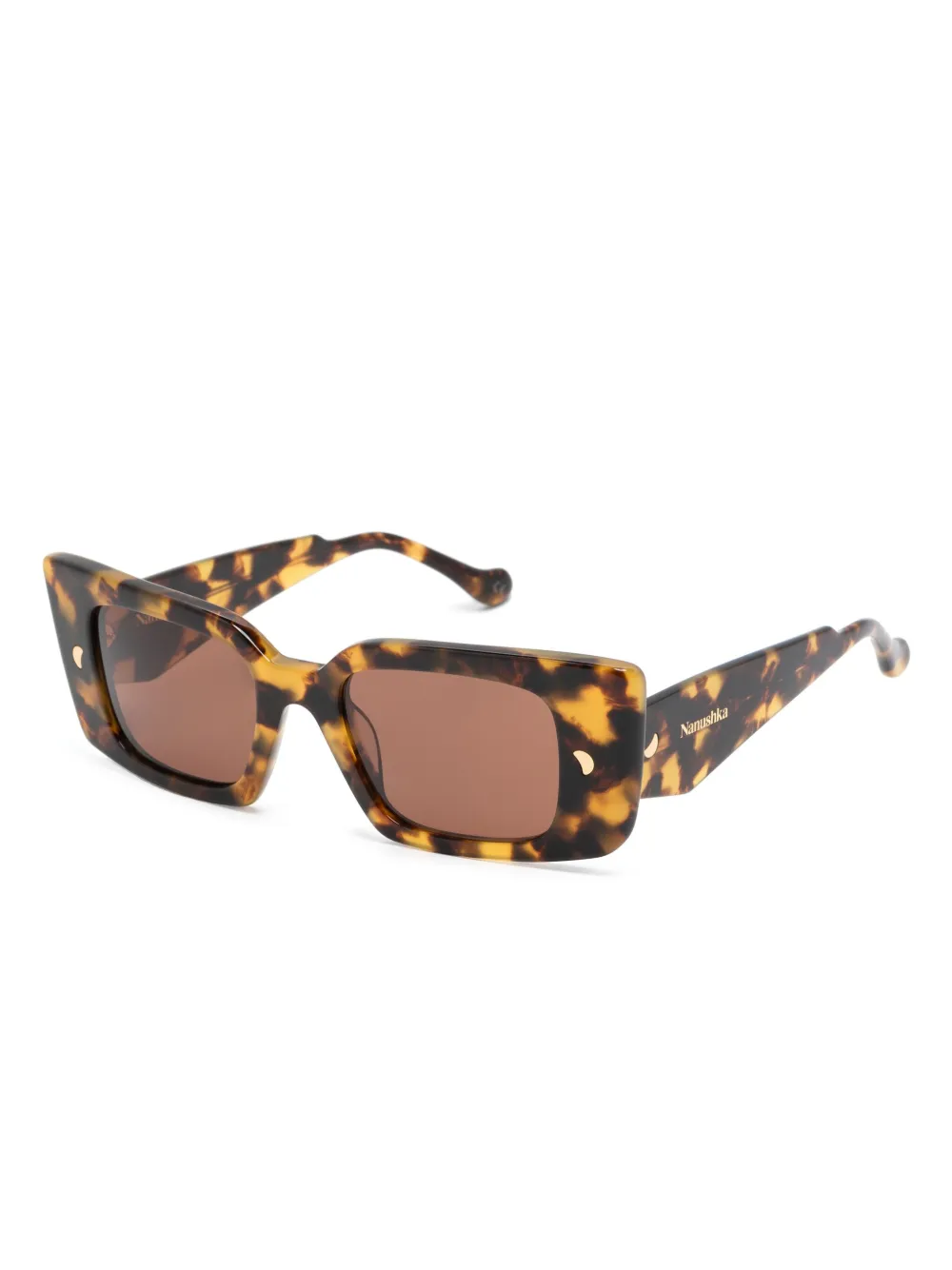 Havana bruin acetaat schildpad montuur rechthoekig montuur bruine glazen goudkleurig logo op de pootjes bewerkte poten met gewelfde uiteinden Deze bril wordt verkocht met een beschermhoes. ^