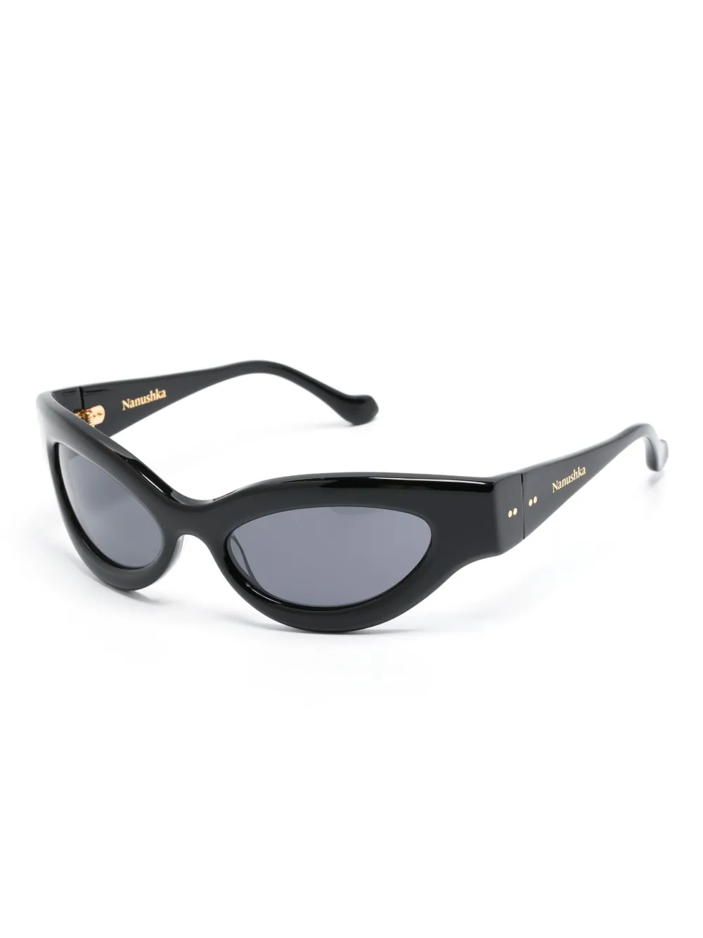 zwart acetaat cat-eye montuur blauw getinte glazen met UV-bescherming pootjes met gegraveerd logo gebogen uiteinden Deze bril wordt verkocht met een beschermhoes.
