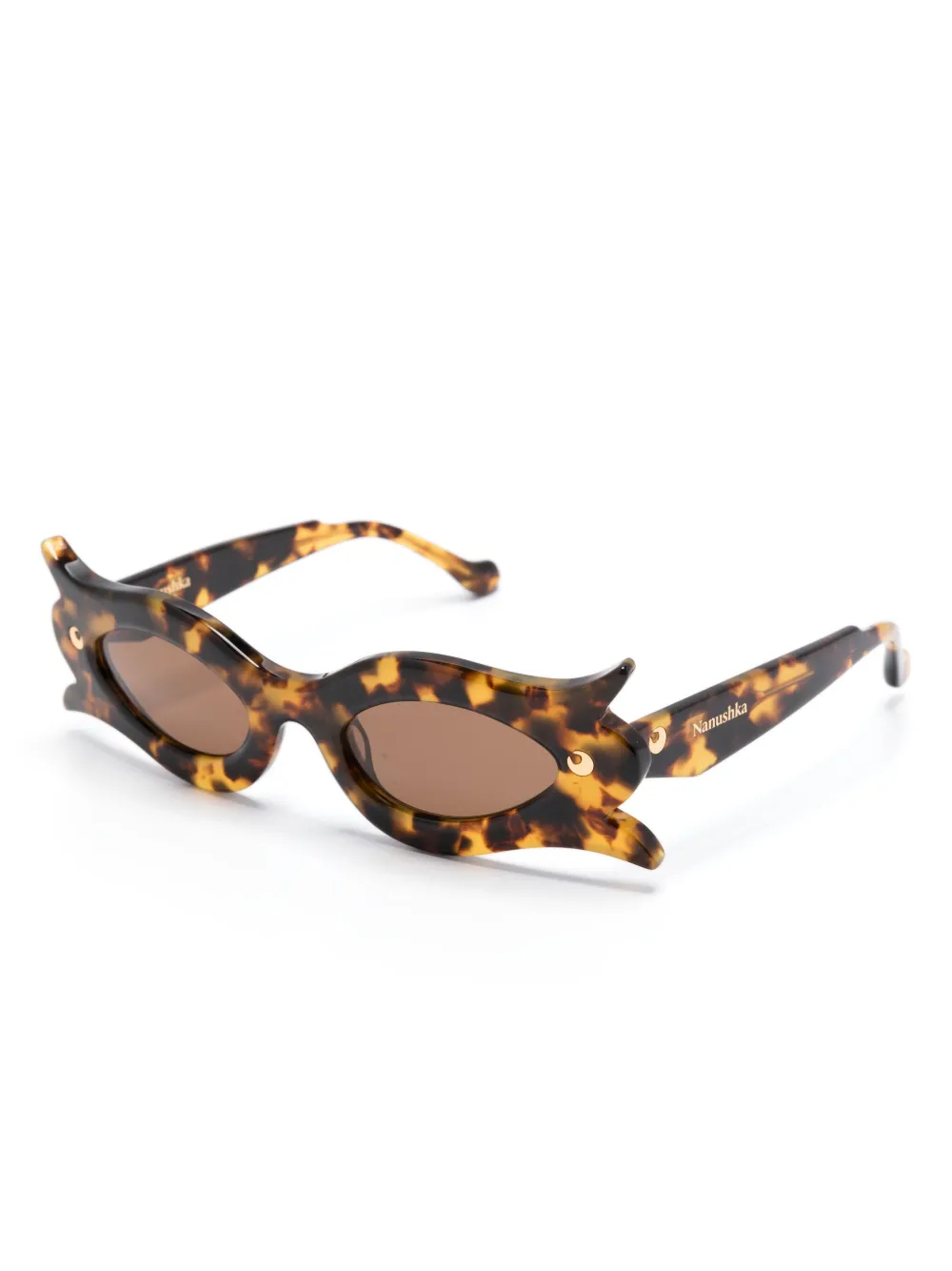animalier bruin gerecyclede acetaatblend schildpad montuur montuur met bloemenprint bruine glazen glazen met UV-bescherming goudkleurig logo rechte pootjes gebogen uiteinden