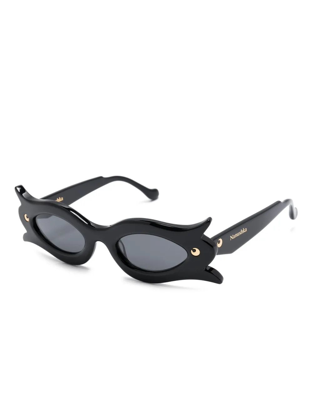 zwart gerecyclede acetaatblend montuur met bloemenprint grijze glazen glazen met UV-bescherming goudkleurig logo rechte pootjes gebogen uiteinden