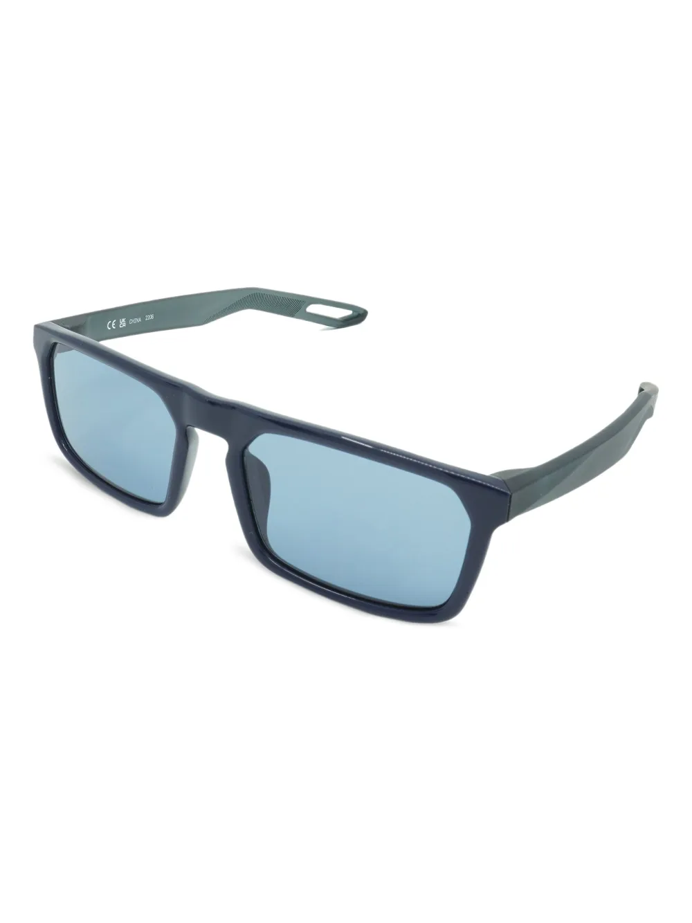 zwart vierkant montuur blauwe glazen rechte pootjes Deze bril wordt verkocht met een beschermhoes.
