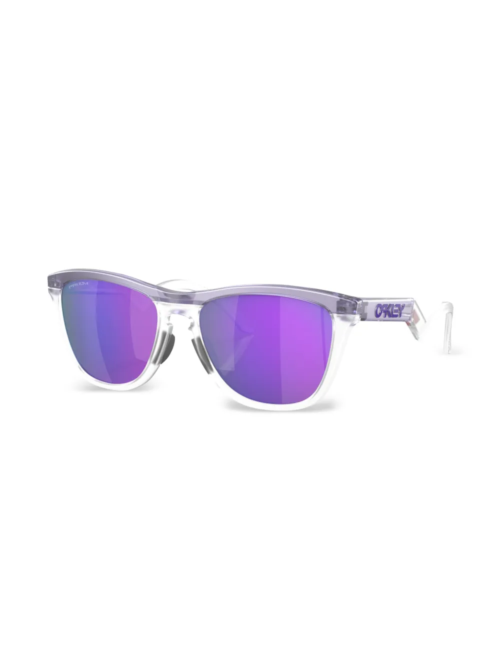 Elektrisch paars, vierkant montuur, paarse glazen, geschulpte pootjes, gebogen uiteinde, pootje met gegraveerd logo en glazen met UV-bescherming. Deze bril wordt verkocht met een beschermhoes..