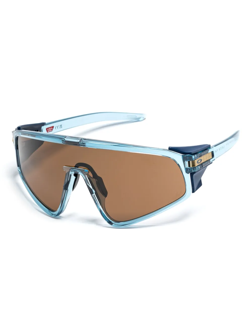 lichtblauw BiO-Matter® doorzichtig design shield montuur Prizm Tungsten spiegelende glazen pootjes met gegraveerd logo rechte pootjes Deze bril wordt verkocht met een beschermhoes.