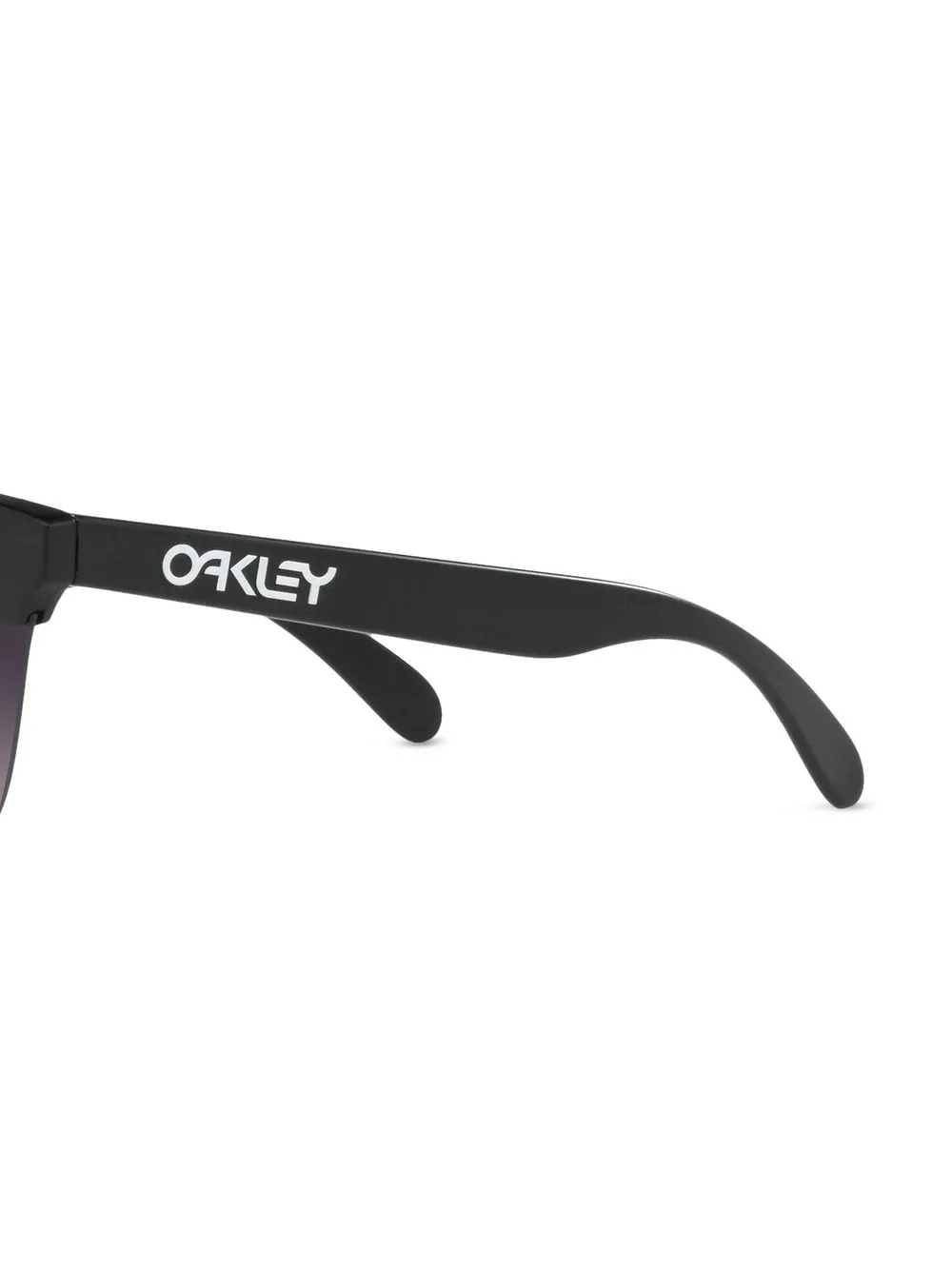 Gitzwart, matte afwerking, rechthoekig montuur, glazen met kleurverloop, neuskussentjes, logoprint op het pootje, rechte pootjes, gebogen uiteinde en UV-bescherming. Deze bril wordt verkocht met een beschermhoes..