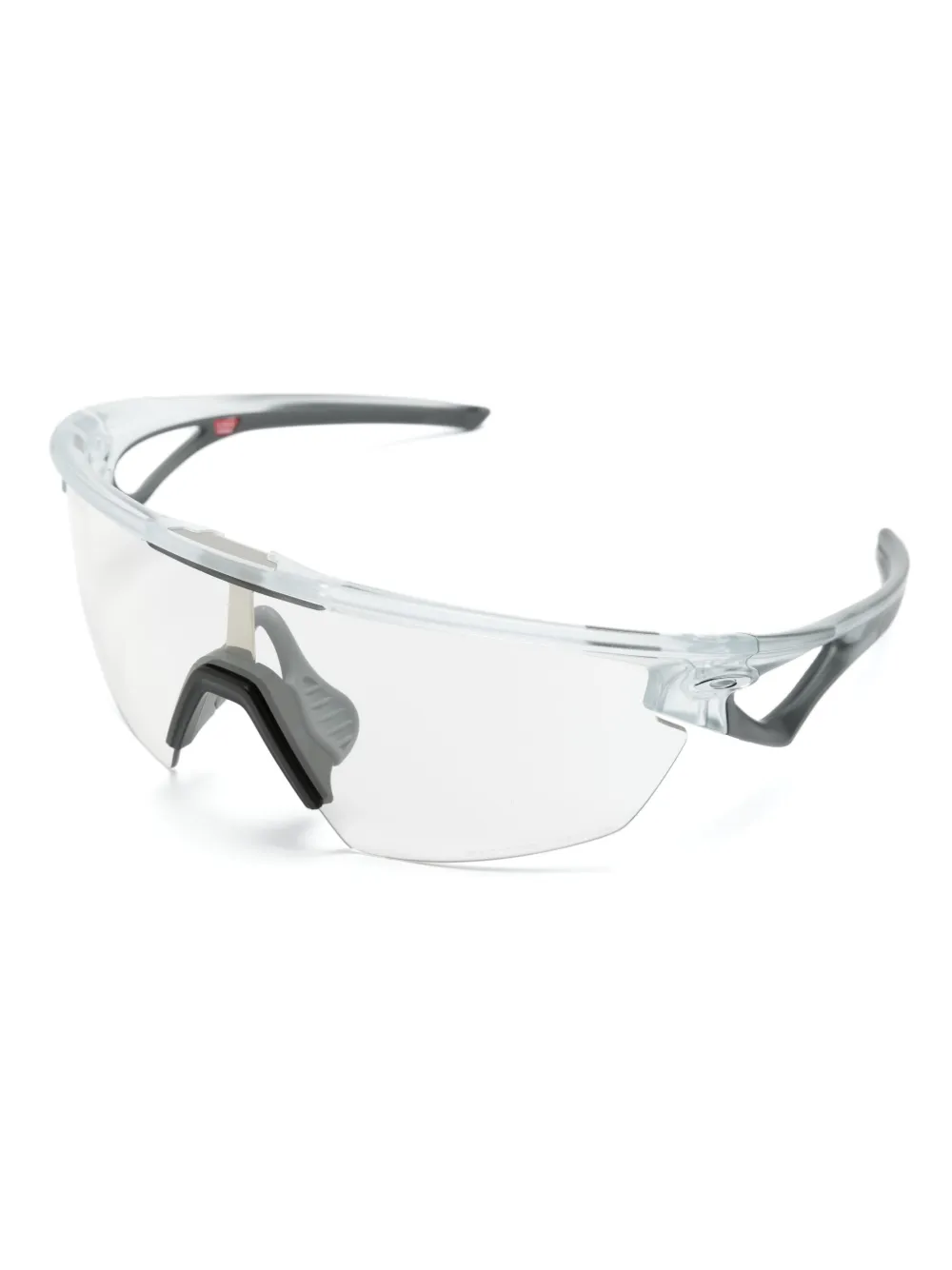 doorzichtig ontwerp gewelfde pootjes shield montuur design met half montuur uitgesneden detail rechte afwerking logo bedrukt pootje doorzichtige glazen lichtgrijs Deze bril wordt verkocht met een beschermhoes.