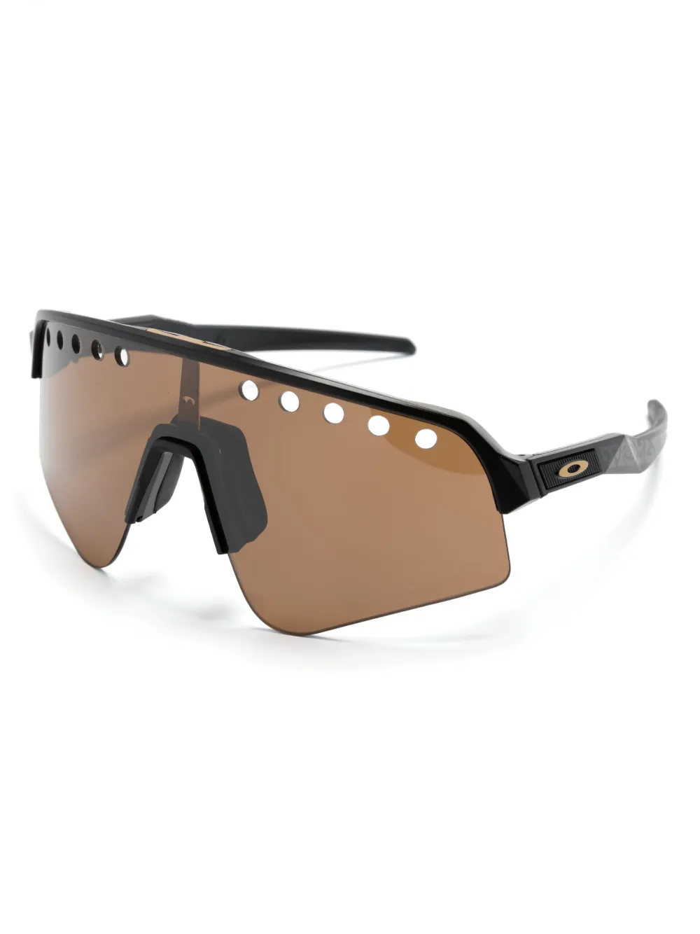 Gekleurde glazen, oversized montuur, rechte pootjes en gebogen uiteinde. Deze bril wordt verkocht met een beschermhoes..