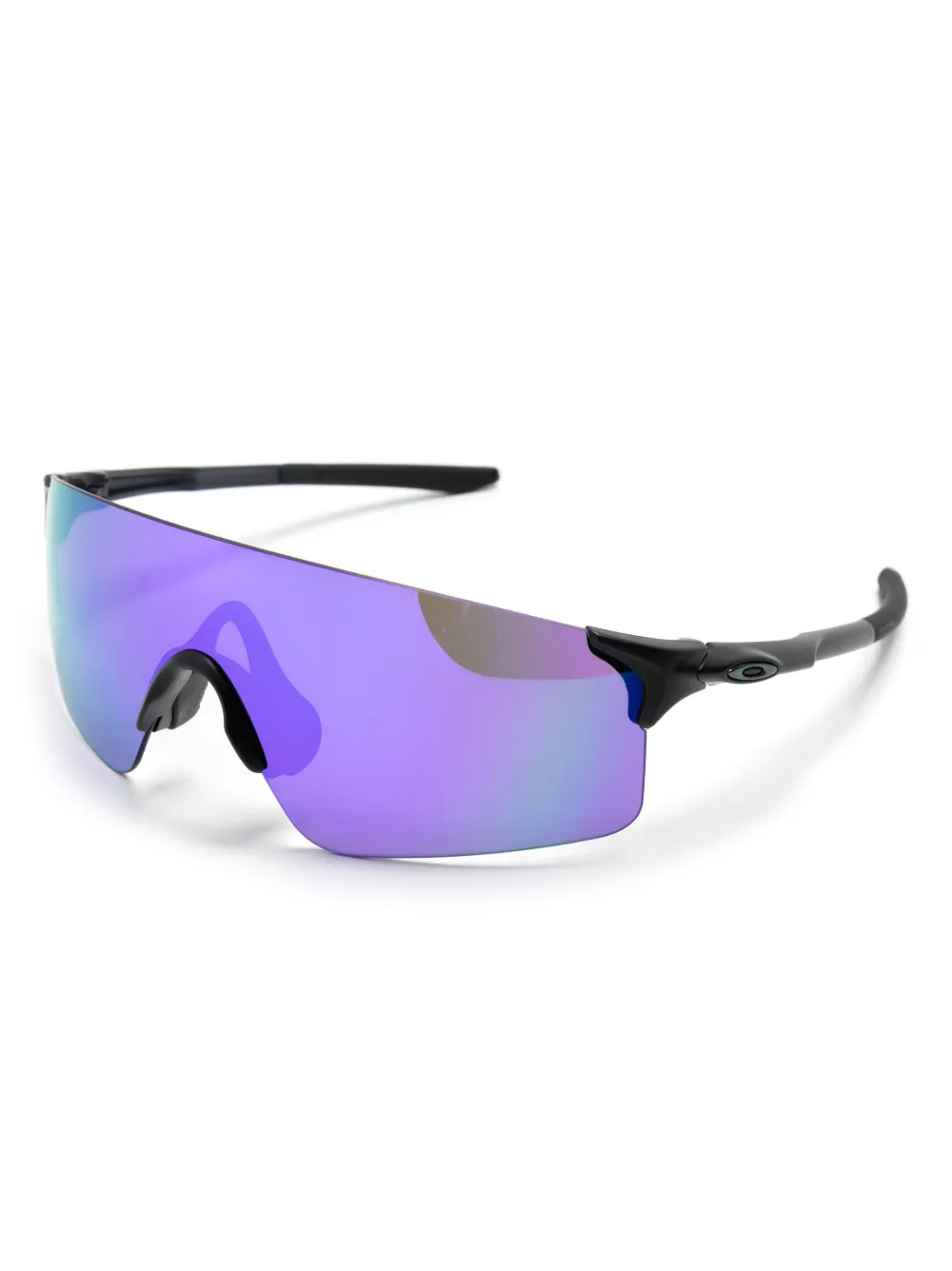 Zwart, donkerviolet, gespiegelde glazen, piloten montuur, rechte pootjes en gebogen uiteinde. Deze bril wordt verkocht met een beschermhoes..