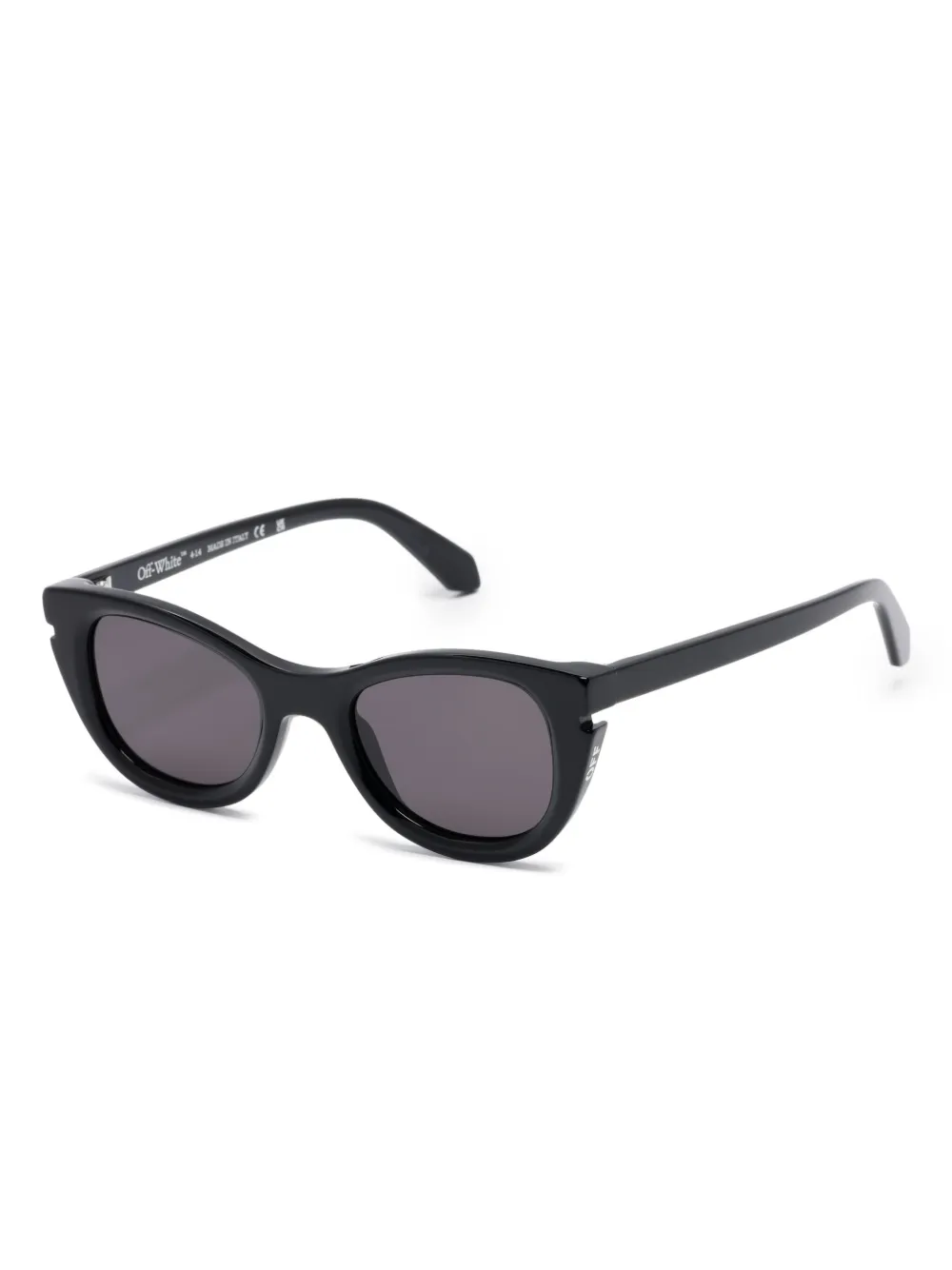 zwart acetaat cat-eye montuur grijze glazen logo-reliëf aan de zijkant rechte poten met gebogen uiteinden Deze bril wordt verkocht met een beschermhoes.