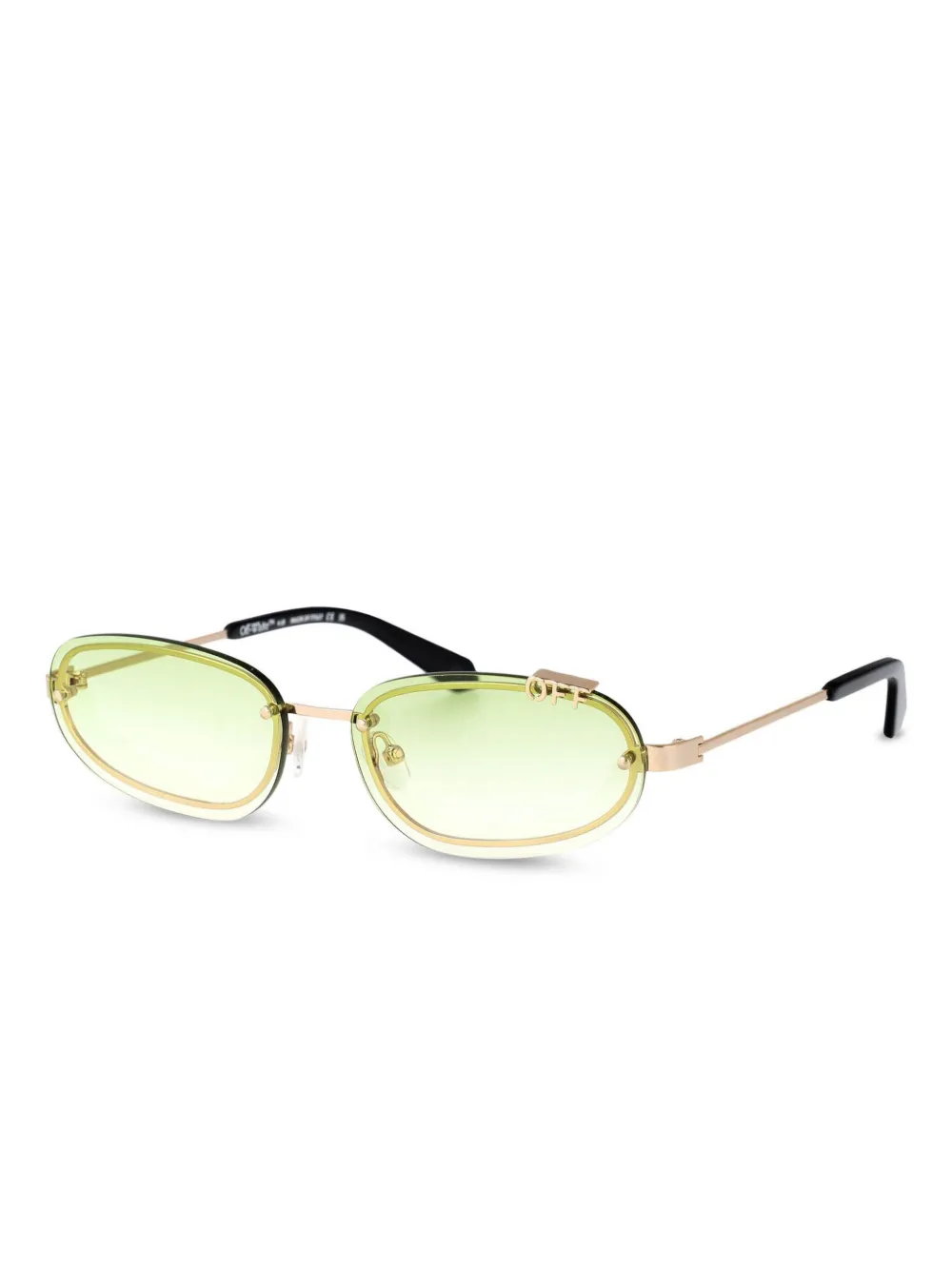 groen getinte glazen metallic gouden montuur slanke tempels zwarte afwerking van acetaat verstelbare neuskussentjes logodetail op de pootjes Deze bril wordt verkocht met een beschermhoes.