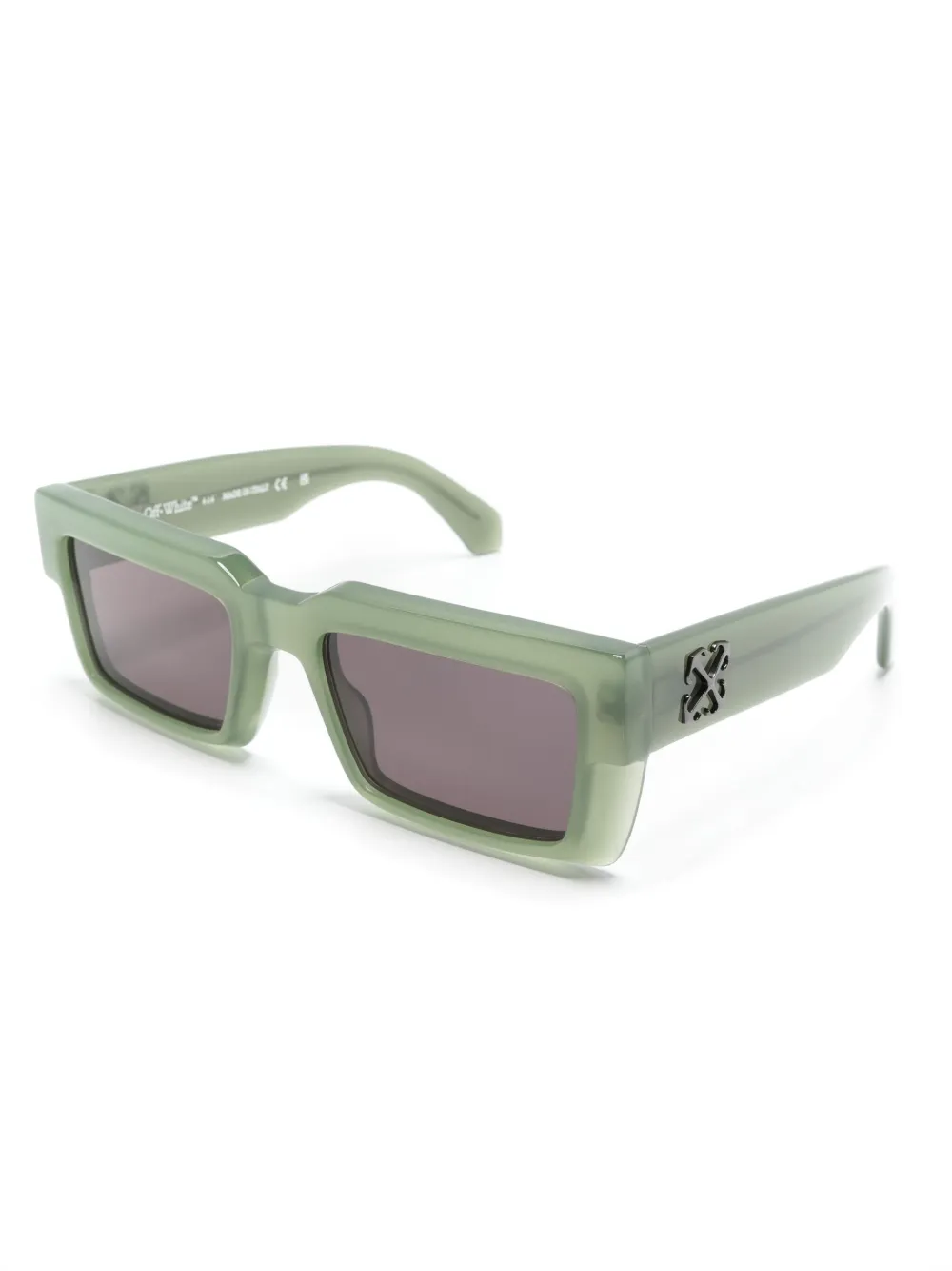olijfgroen acetaat rechthoekig montuur grijze glazen kenmerkend Anagram plakkaat rechte pootjes gebogen uiteinden Deze bril wordt verkocht met een beschermhoes.