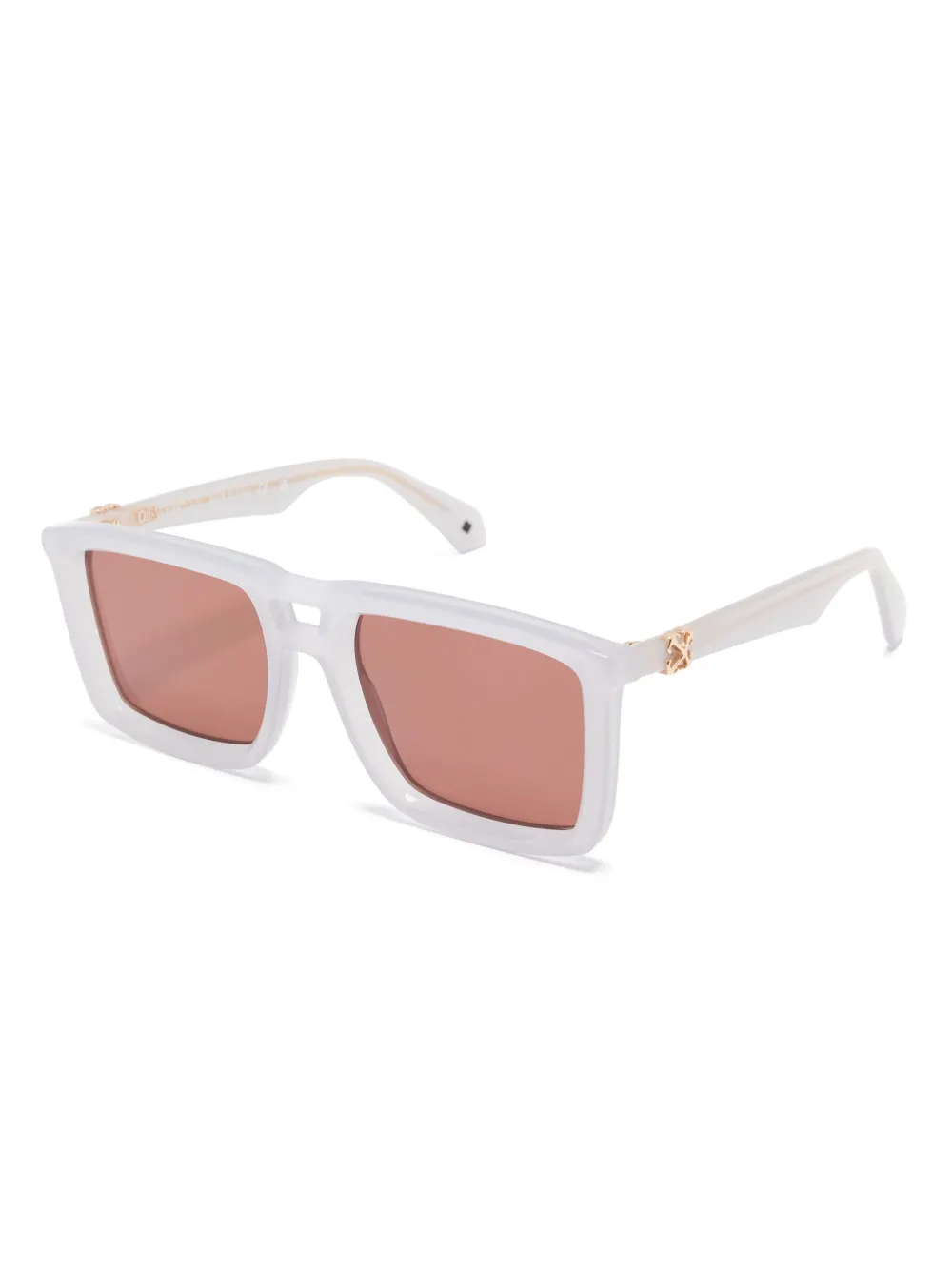 lichtgrijs vierkant montuur rode glazen kenmerkend Arrows patroon Deze bril wordt verkocht met een beschermhoes.