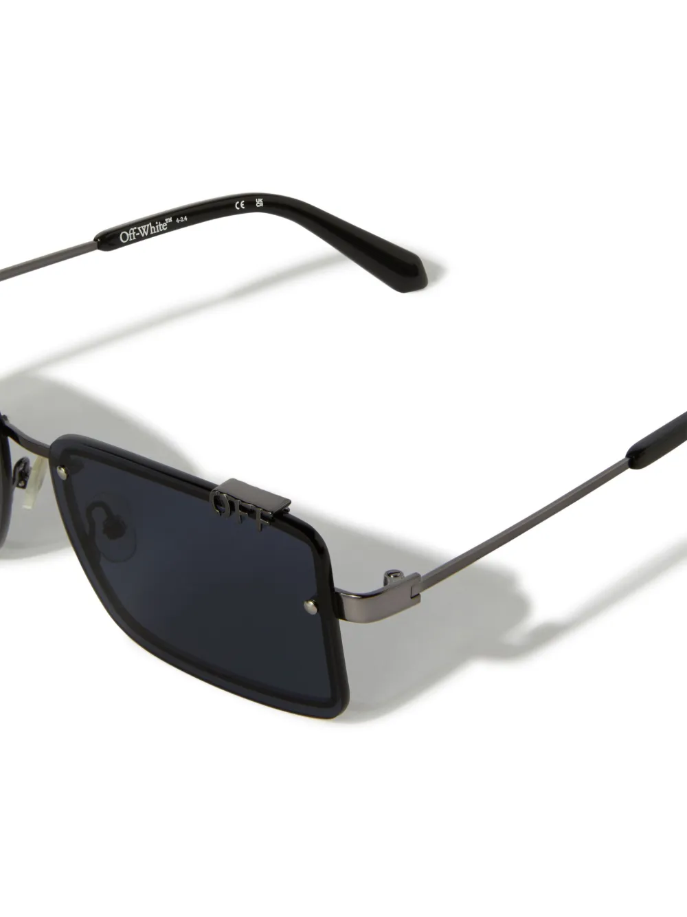 zwart metaal acetaat rechthoekig montuur grijze glazen glazen met UV-bescherming logopatch neuskussentjes rechte pootjes gebogen uiteinden Deze bril wordt verkocht met een beschermhoes.