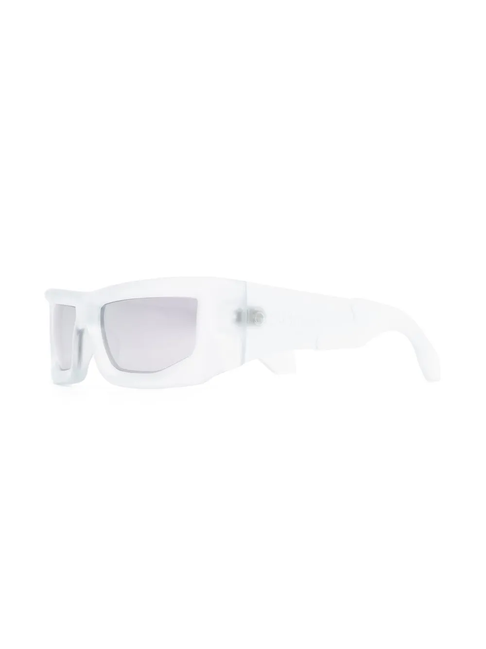 Doorzichtig design, vierkant montuur, gekleurde glazen en logoprint op het pootje. Deze bril wordt verkocht met een beschermhoes..