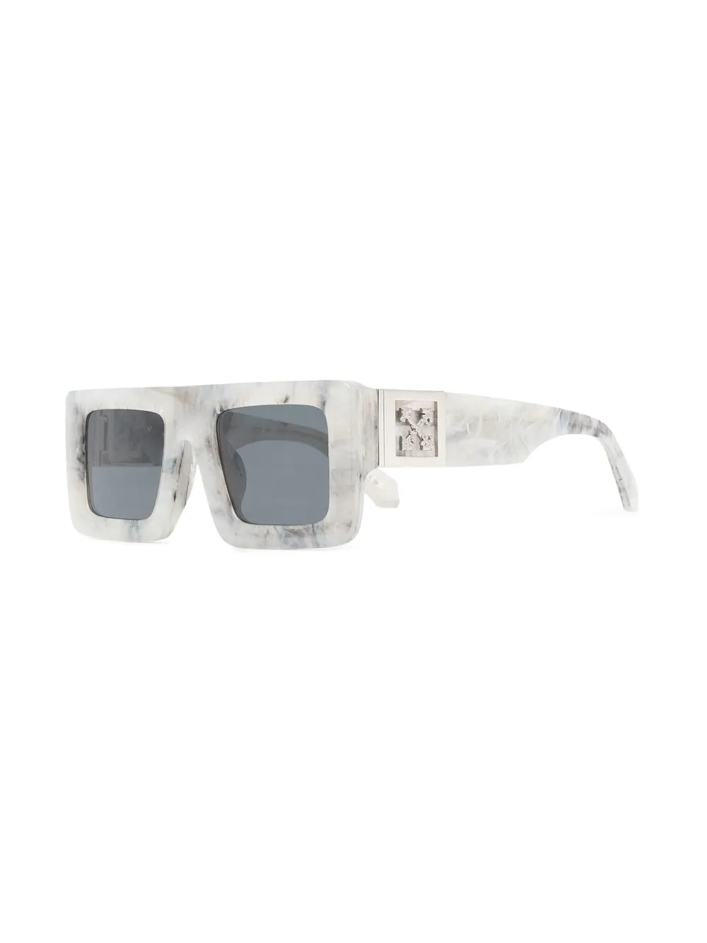 Grijs, marmeren patroon, acetaat, metaal, gekleurde glazen, vierkant montuur, kenmerkend Arrows patroon, rechte pootjes en gebogen uiteinde.