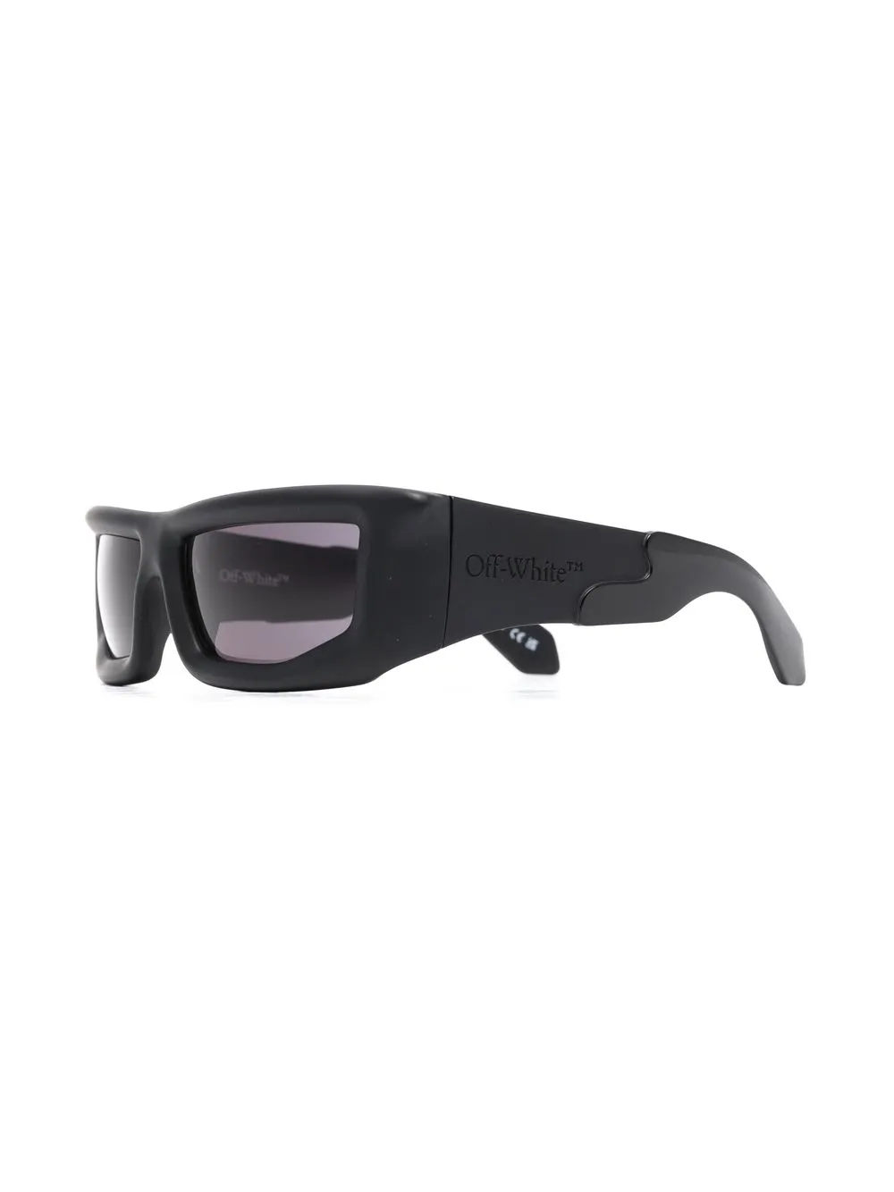 Zwart, acetaat, vierkant montuur, gekleurde glazen en logoprint op het pootje. Deze bril wordt verkocht met een beschermhoes..