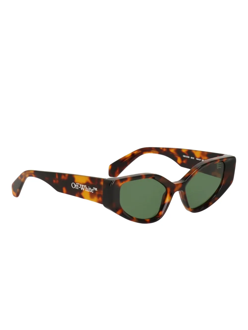 bruin schildpadschild-design geometrisch montuur groen getinte glazen logodetail Deze bril wordt verkocht met een beschermhoes.