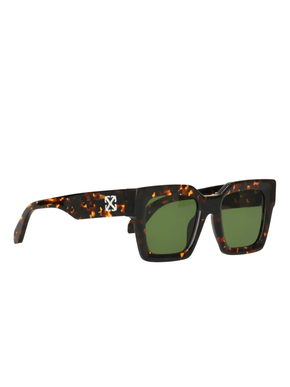 bruin schildpadschild-design geometrisch montuur groen getinte glazen logodetail Deze bril wordt verkocht met een beschermhoes.