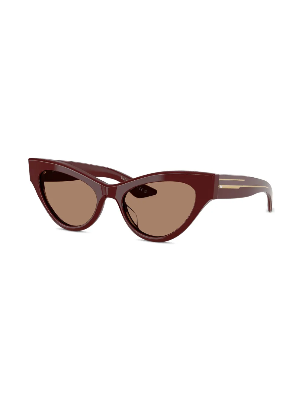 bordeauxrood acetaat cat-eye montuur gekleurde glazen streep op de poot rechte pootjes gebogen uiteinden Deze bril wordt verkocht met een beschermhoes.