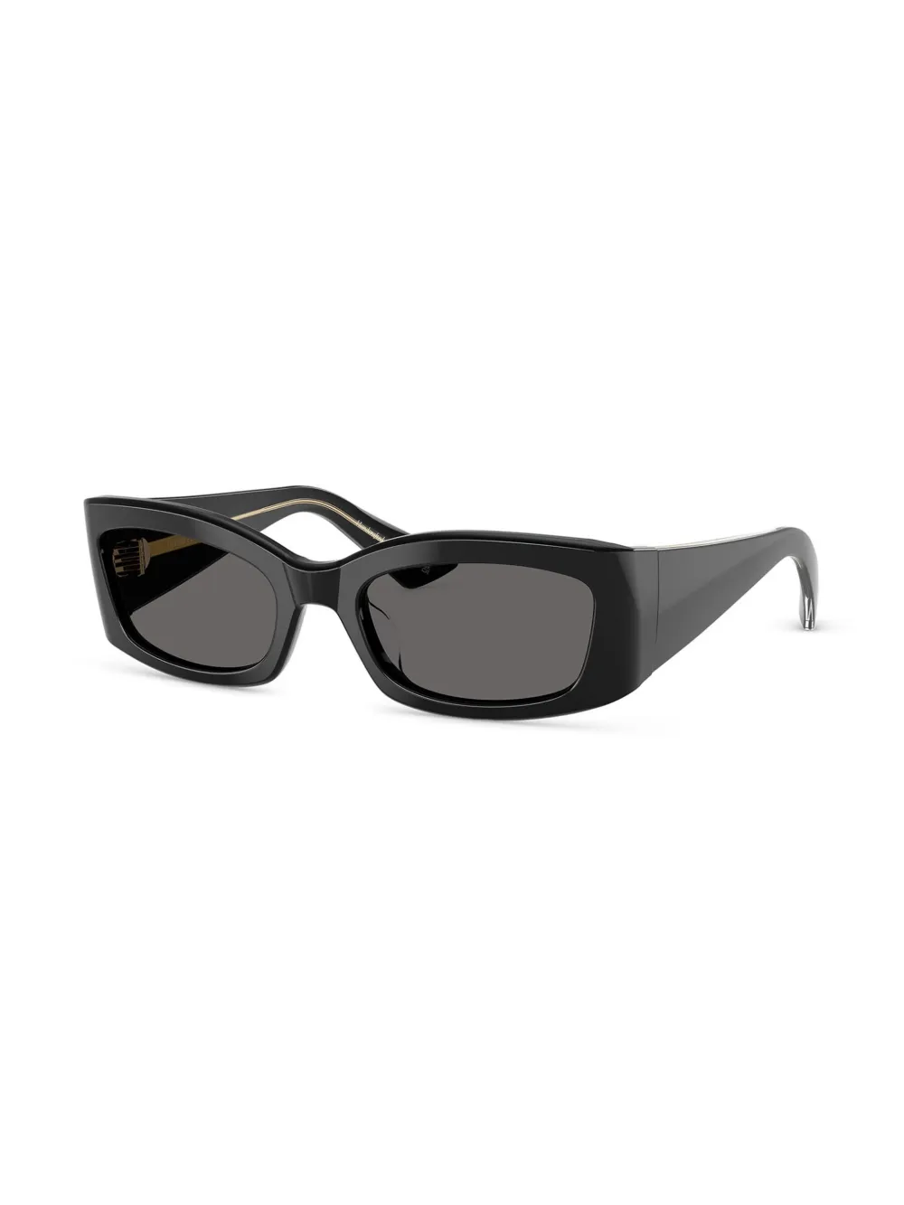 zwart acetaat rechthoekig montuur grijze glazen rechte pootjes gebogen uiteinden Deze bril wordt verkocht met een beschermhoes.