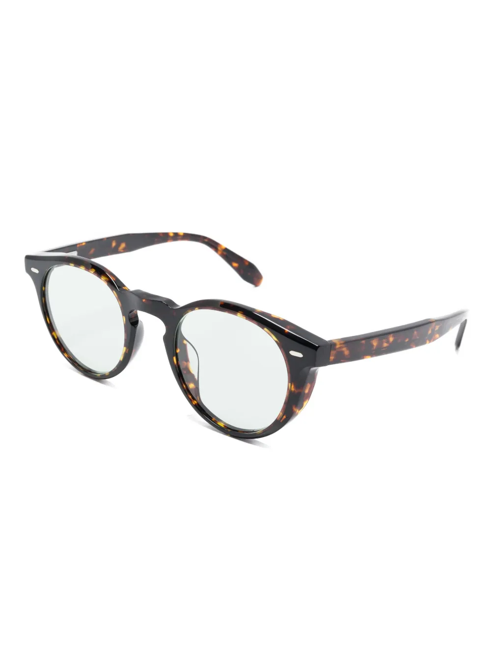 bruin rond montuur gekleurde glazen gebogen uiteinden Deze bril wordt verkocht met een beschermhoes.