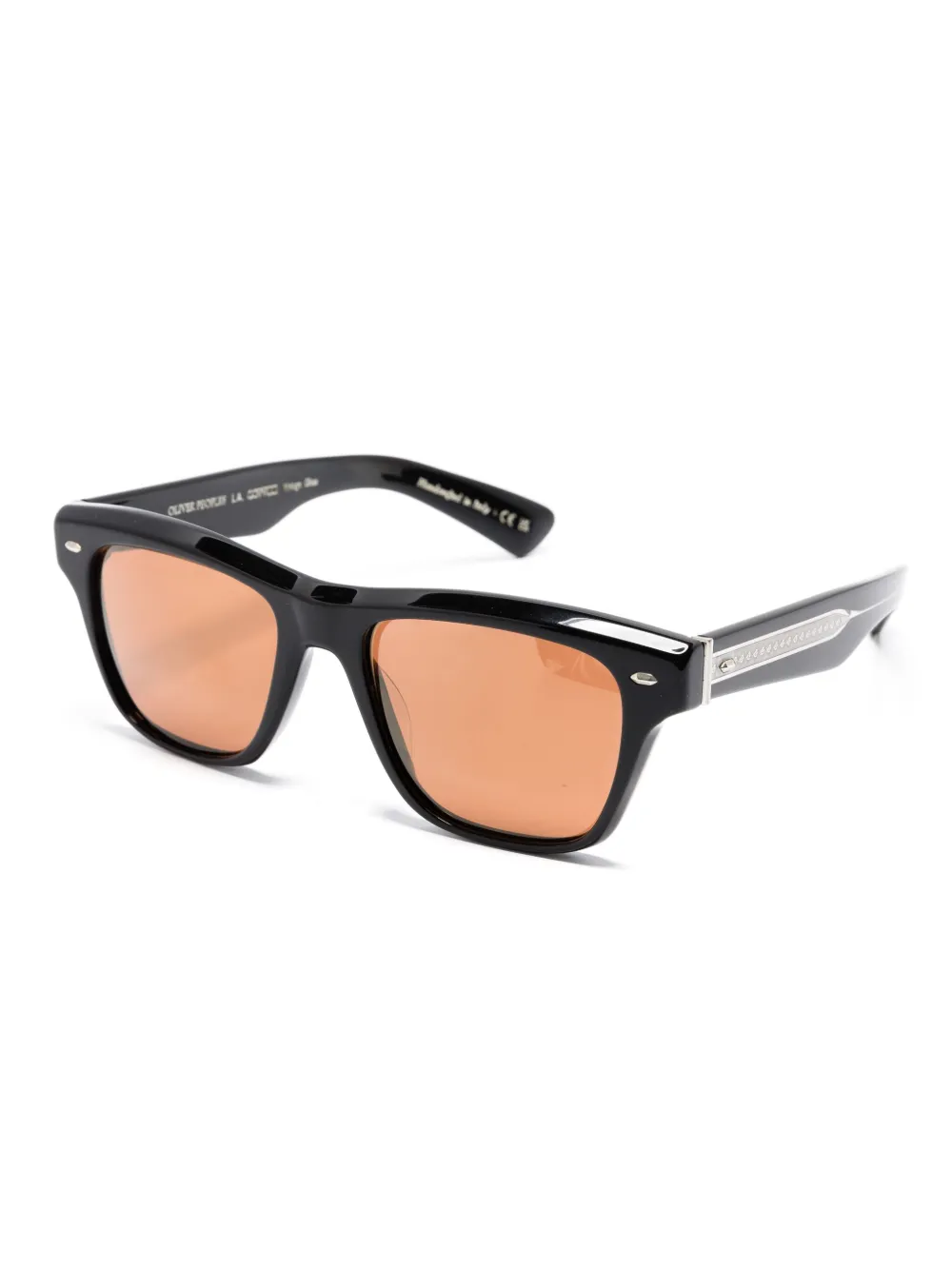 zwart acetaat vierkant montuur glazen met UV-bescherming oranje glazen verhoogde neusbrug pootjes fhmet gegraveerd logo gestrekte poten met gebogen uiteinden Deze bril wordt verkocht met een beschermhoes.