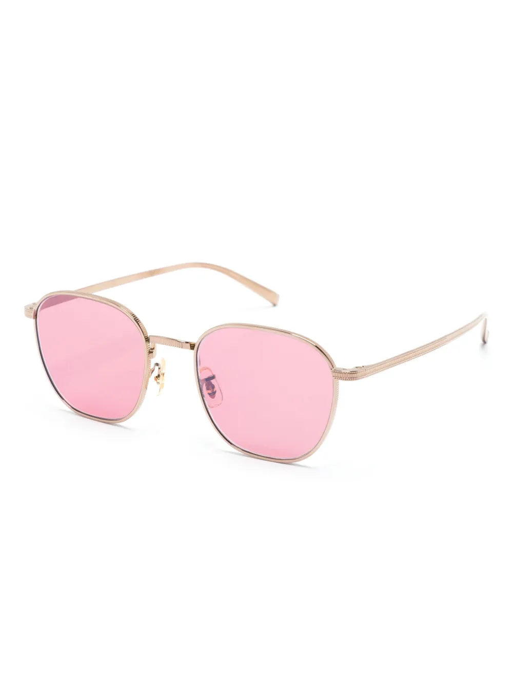 goudkleurig titanium rond montuur roze glazen neuskussentjes rechte pootjes rechte afwerking Deze bril wordt verkocht met een beschermhoes.