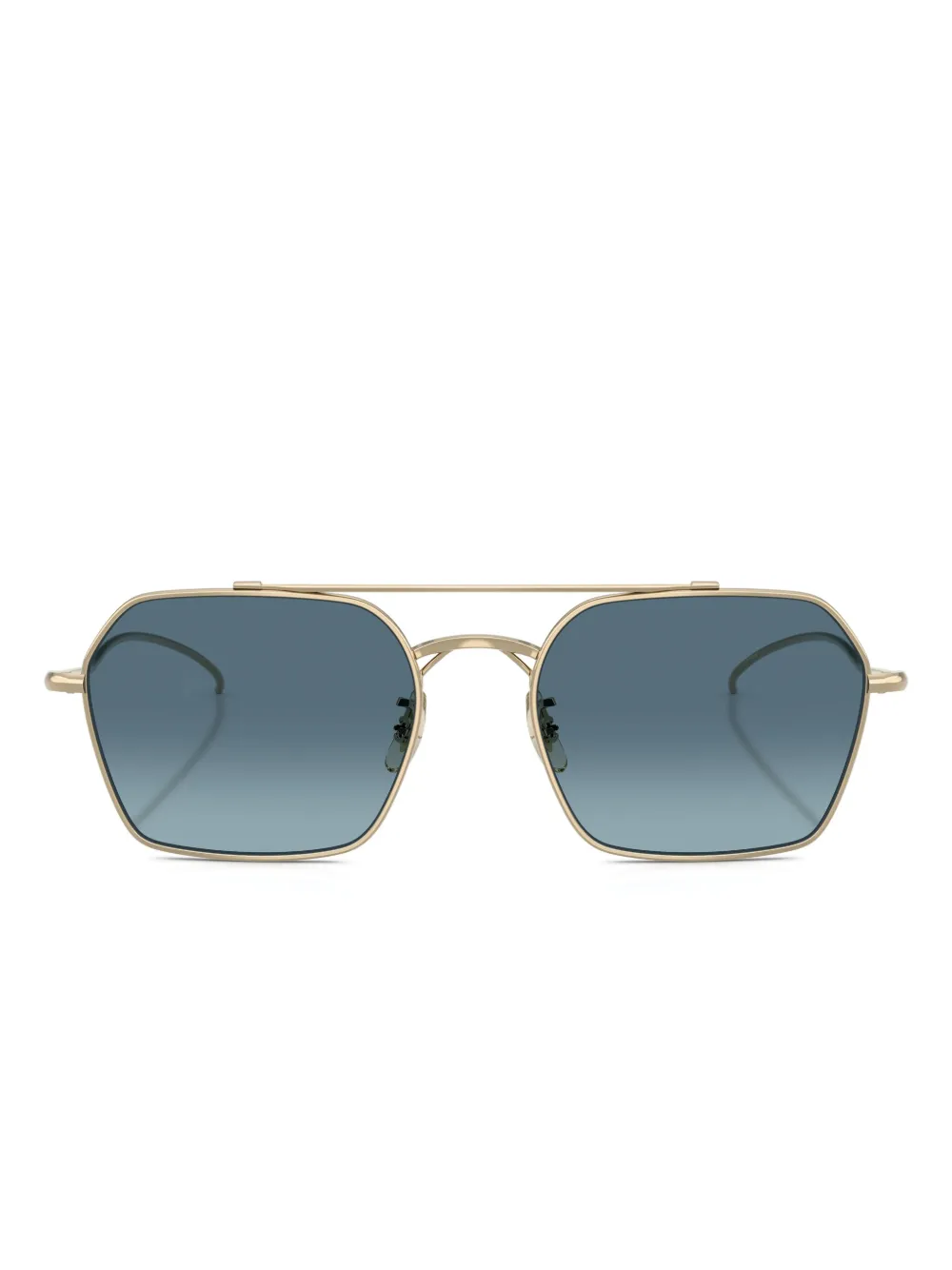 goudkleurig geometrisch montuur dubbele neusbrug neuskussentjes dunne pootjes Deze bril wordt verkocht met een beschermhoes.