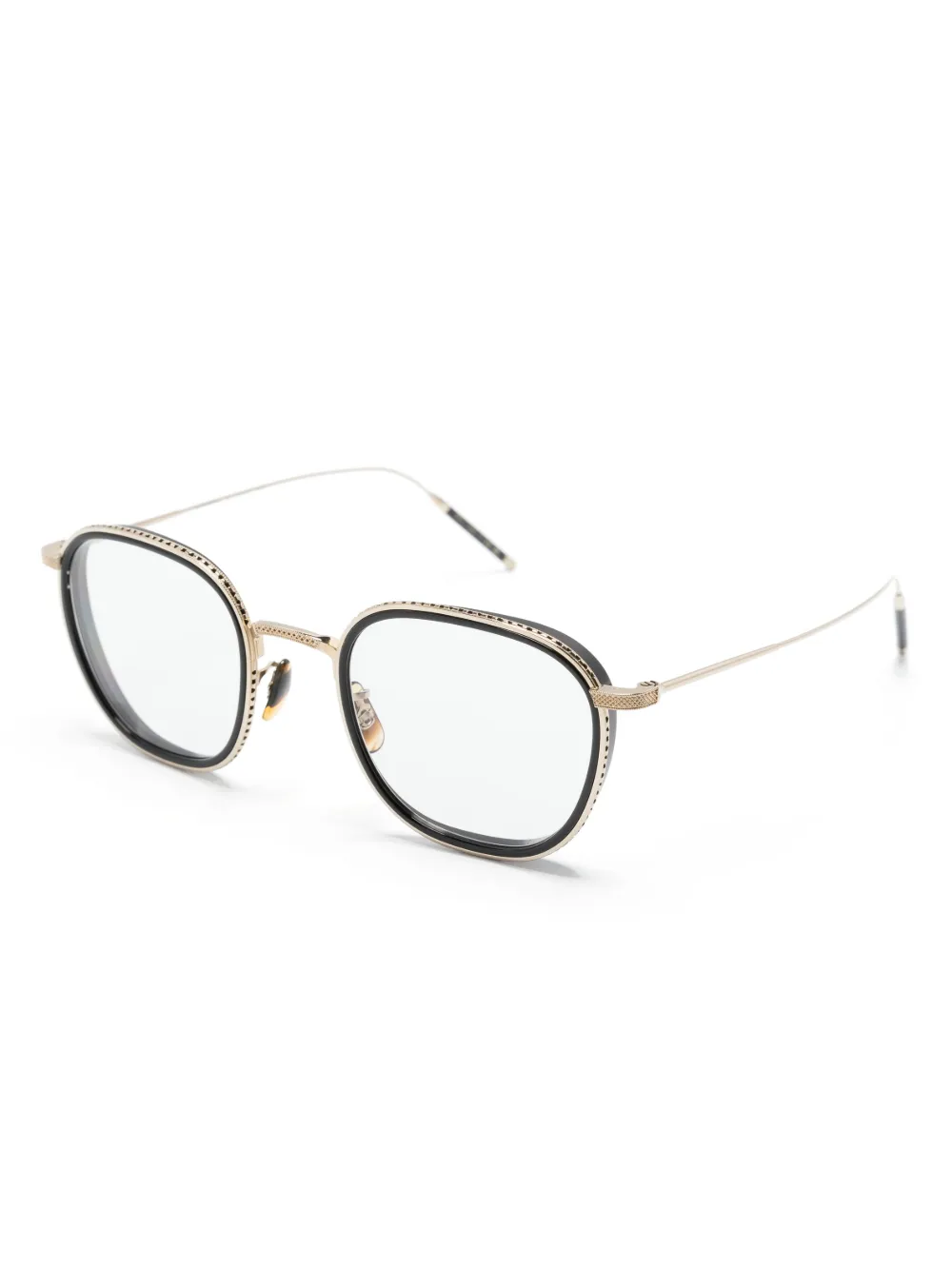 Goudkleurig, zwart, titanium, vierkant montuur, rechte pootjes en gebogen uiteinde. Deze bril wordt verkocht met een beschermhoes.. Alle brillen op FARFETCH worden verkocht met glazen die niet op sterkte zijn..