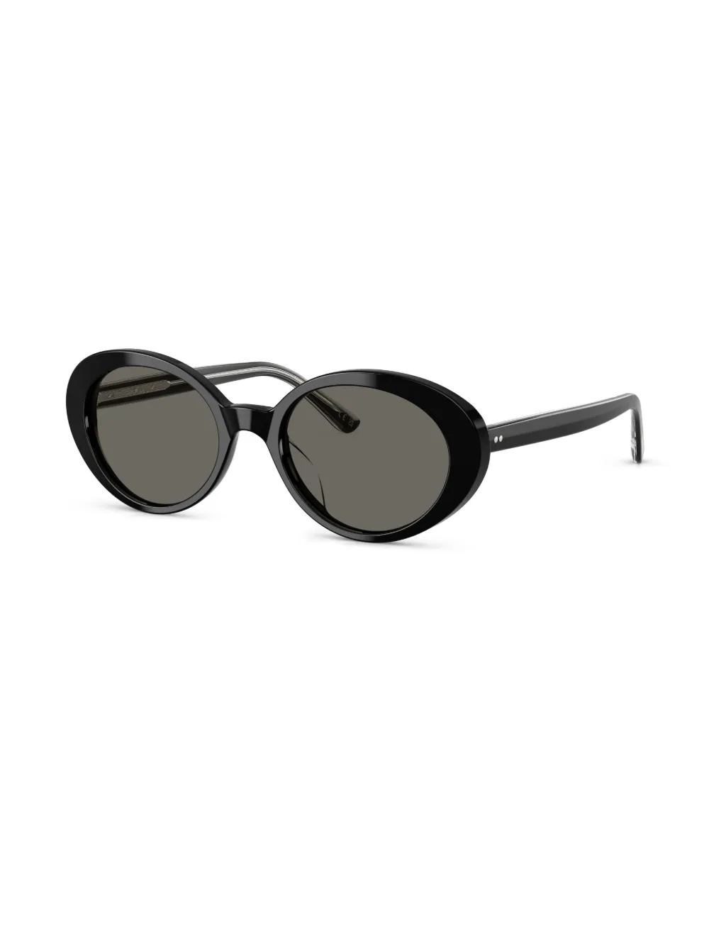 zwart acetaat ovaal montuur grijze glazen neuskussentjes gebogen uiteinden pootje met gegraveerd logo Deze bril wordt verkocht met een beschermhoes.