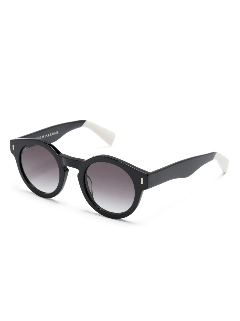 zwart/wit acetaat design met colourblocking rond montuur glazen met kleurverloop rechte pootjes gebogen uiteinden Deze bril wordt verkocht met een beschermhoes.