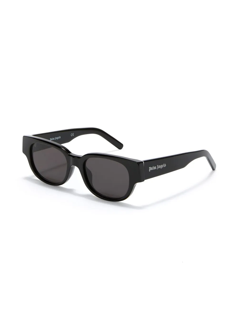 Zwart, rond montuur en grijze glazen. Deze bril wordt verkocht met een beschermhoes.