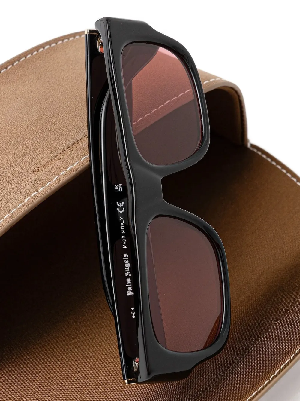zwart rechthoekig montuur roze glazen goudkleurige details Deze bril wordt verkocht met een beschermhoes.