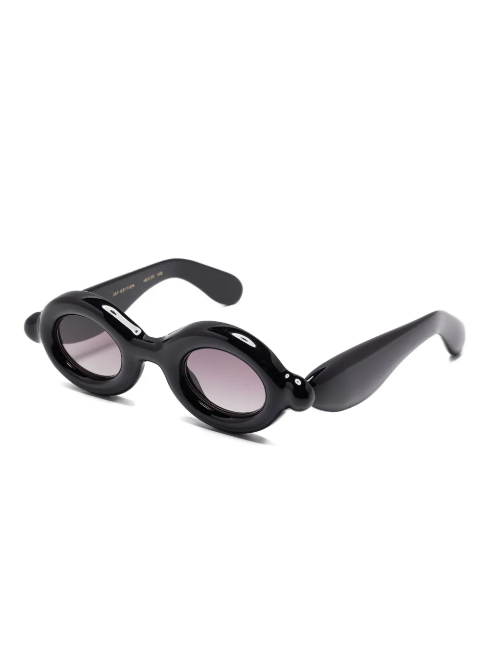 zwart rond montuur gebogen pootjes glazen met kleurverloop gepolijste afwerking Deze bril wordt verkocht met een beschermhoes.