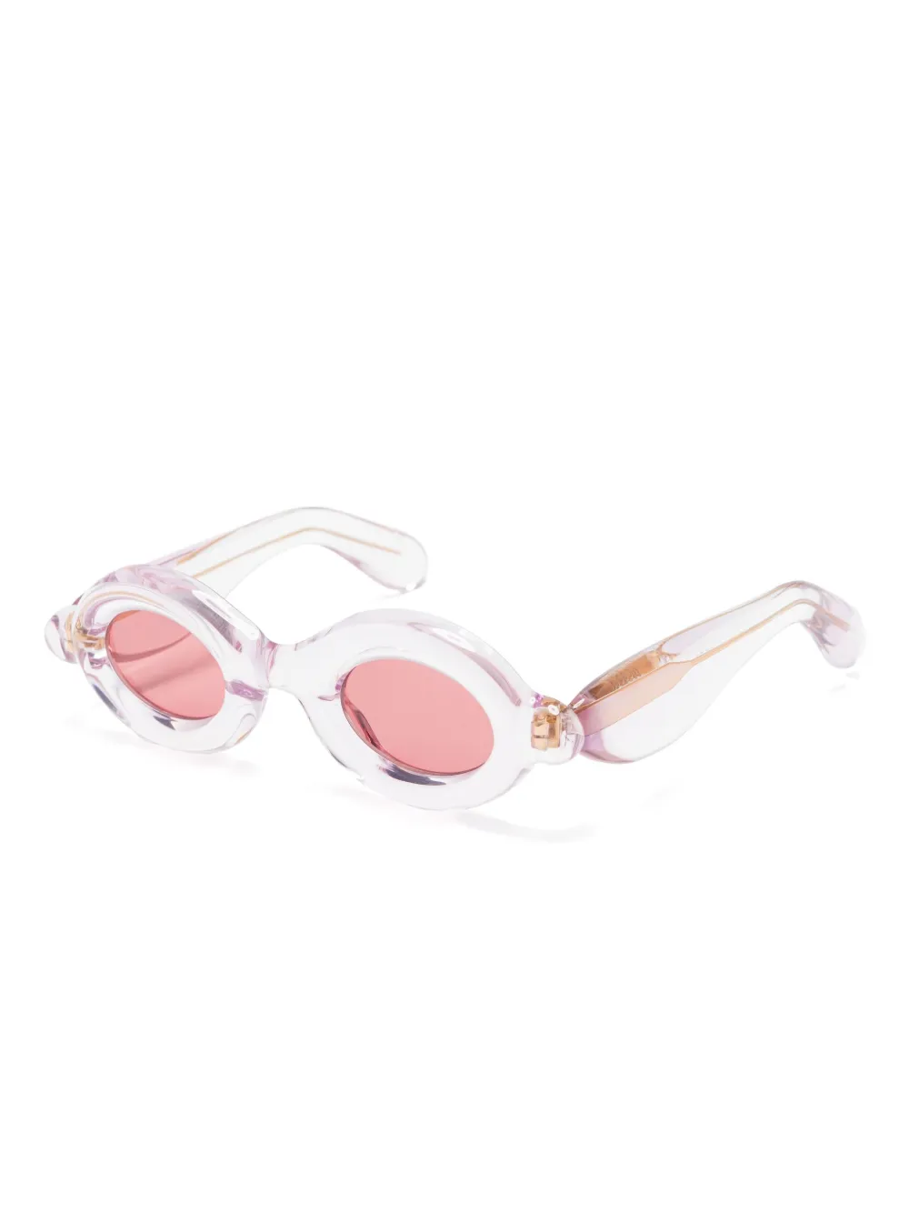 lichtroze gekleurde glazen ovalen montuur rechte pootjes Deze bril wordt verkocht met een beschermhoes.
