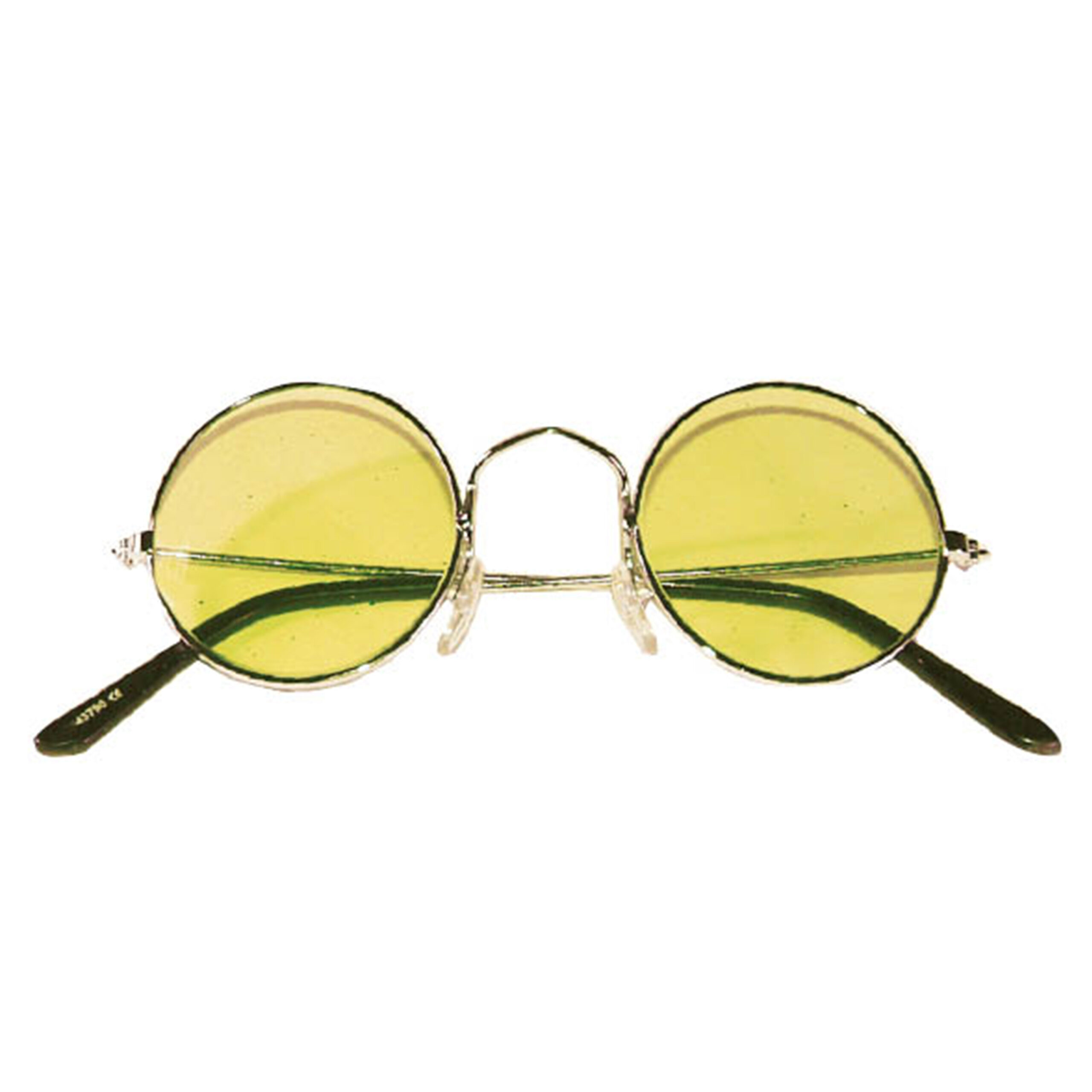 Hippie Flower Power Sixties ronde glazen party zonnebril in het geel. Materiaal: metaal/plastic. Maak uw verkleedkleding set compleet met deze bijpassende party brillen. Geschikt voor dames en heren. Carnaval verkleed party brillen.
